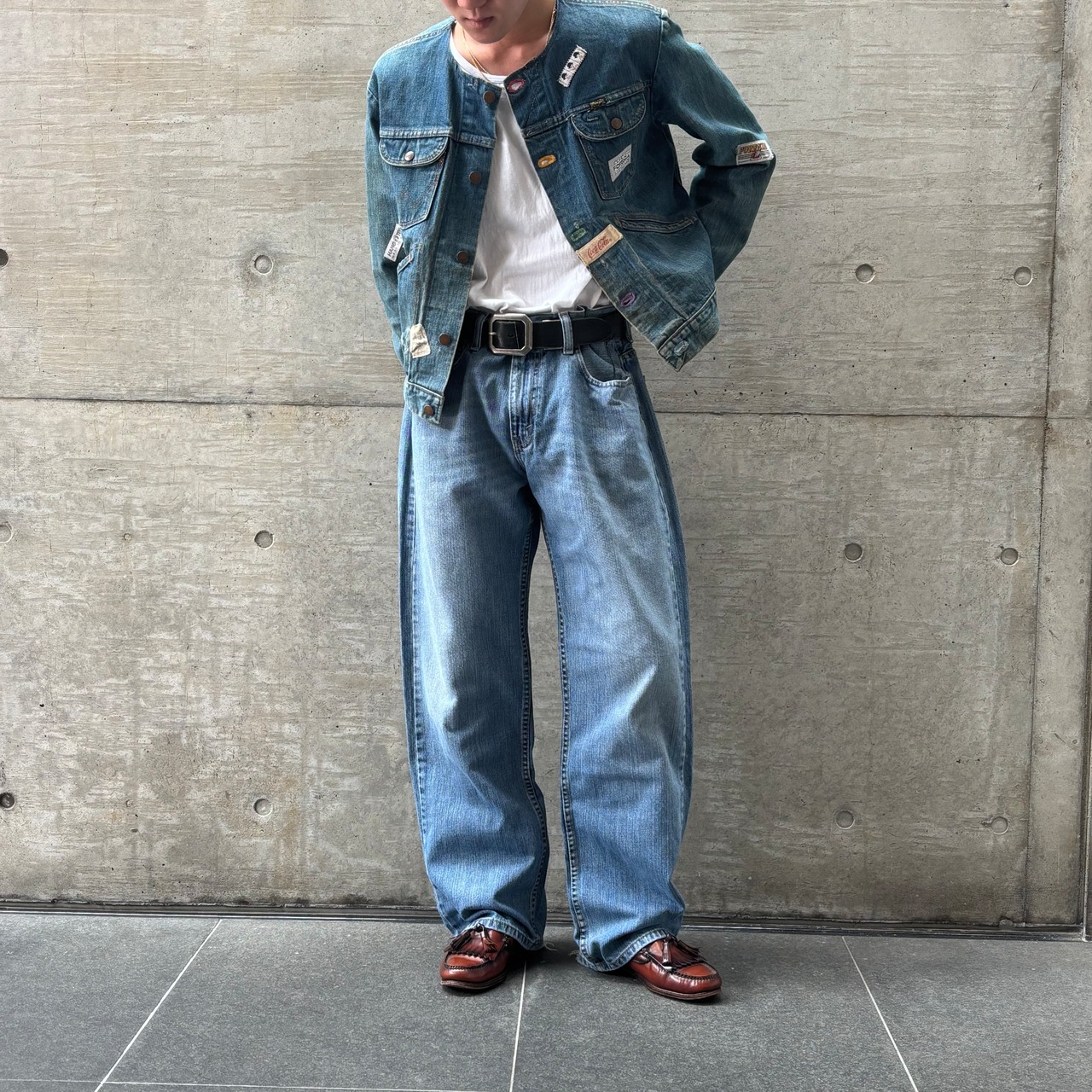 ストンと落ちる太めのストレートシルエットが特徴の569。