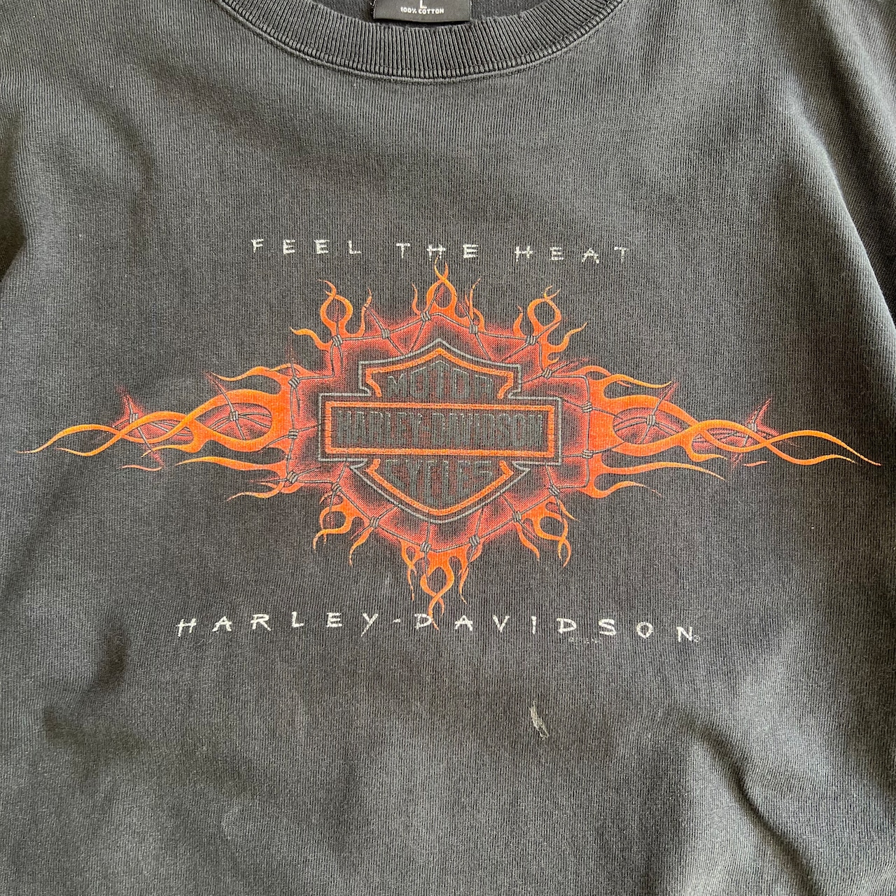 90’s USA製 Harley-Davidson ロングスリーブTシャツ メンズL ブラック ハーレーダビッドソン フェード ボロ ロンT バイク 古着 ヴィンテージ fc-2642【25SST】