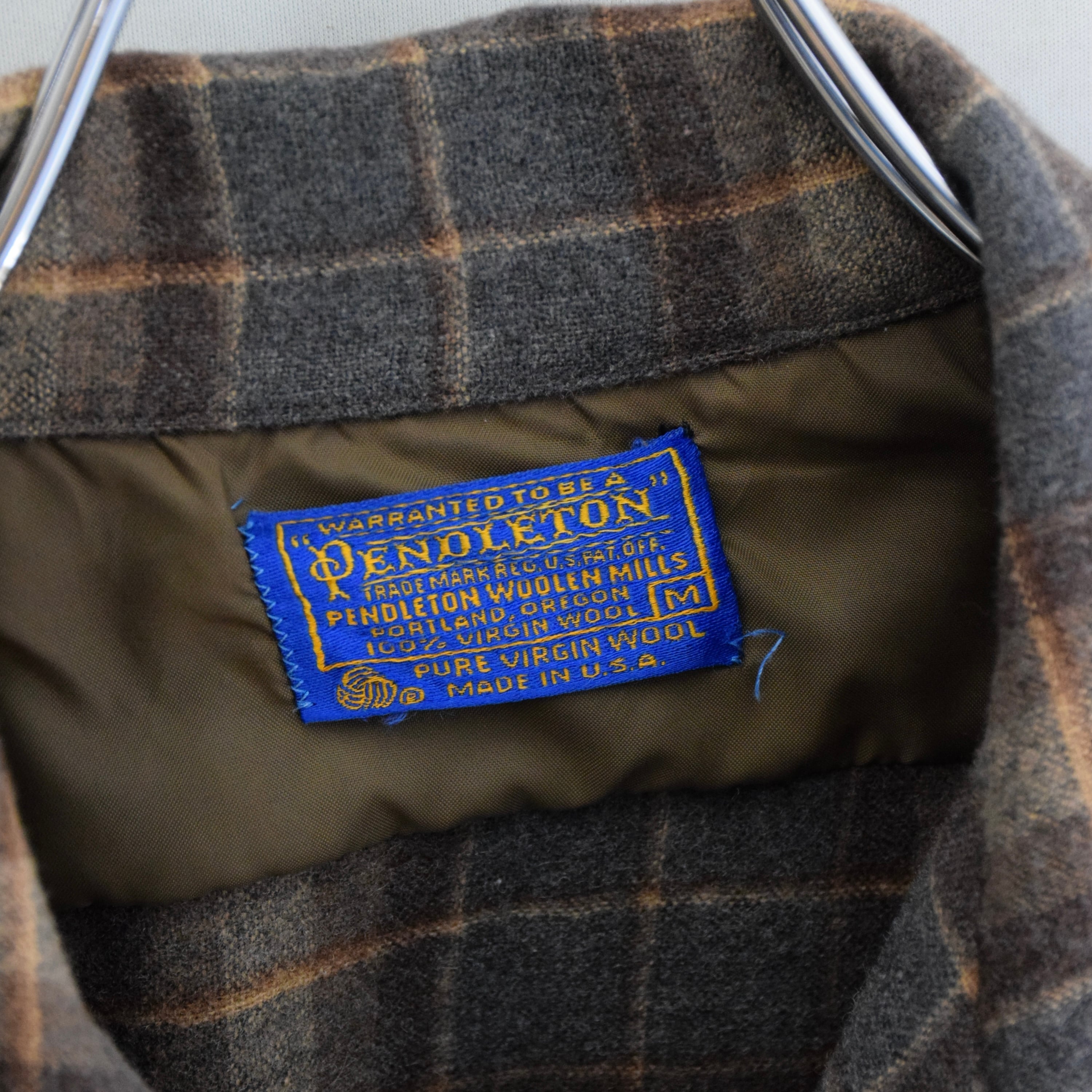 70’s PENDLETON USA製 オープンカラーシャツ メンズM ブラウン ウールシャツ チェックシャツ 古着 fc-2711【25AW】