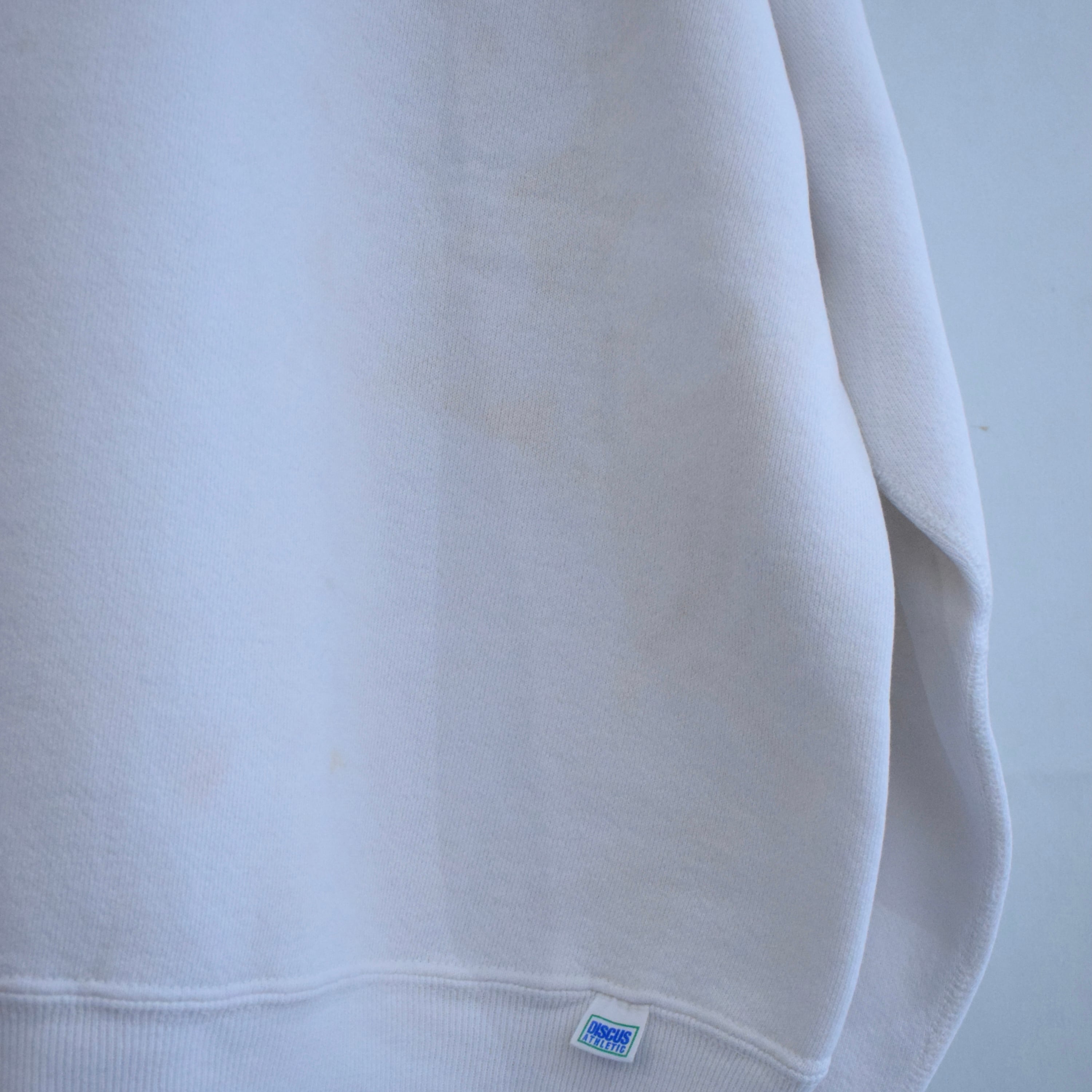 80‘s USA製 DISCCUS ATHLETIC スウェットシャツ メンズL ホワイト プリントスウェット ボロ アメカジ 古着 fc-2729 【25AWSW】