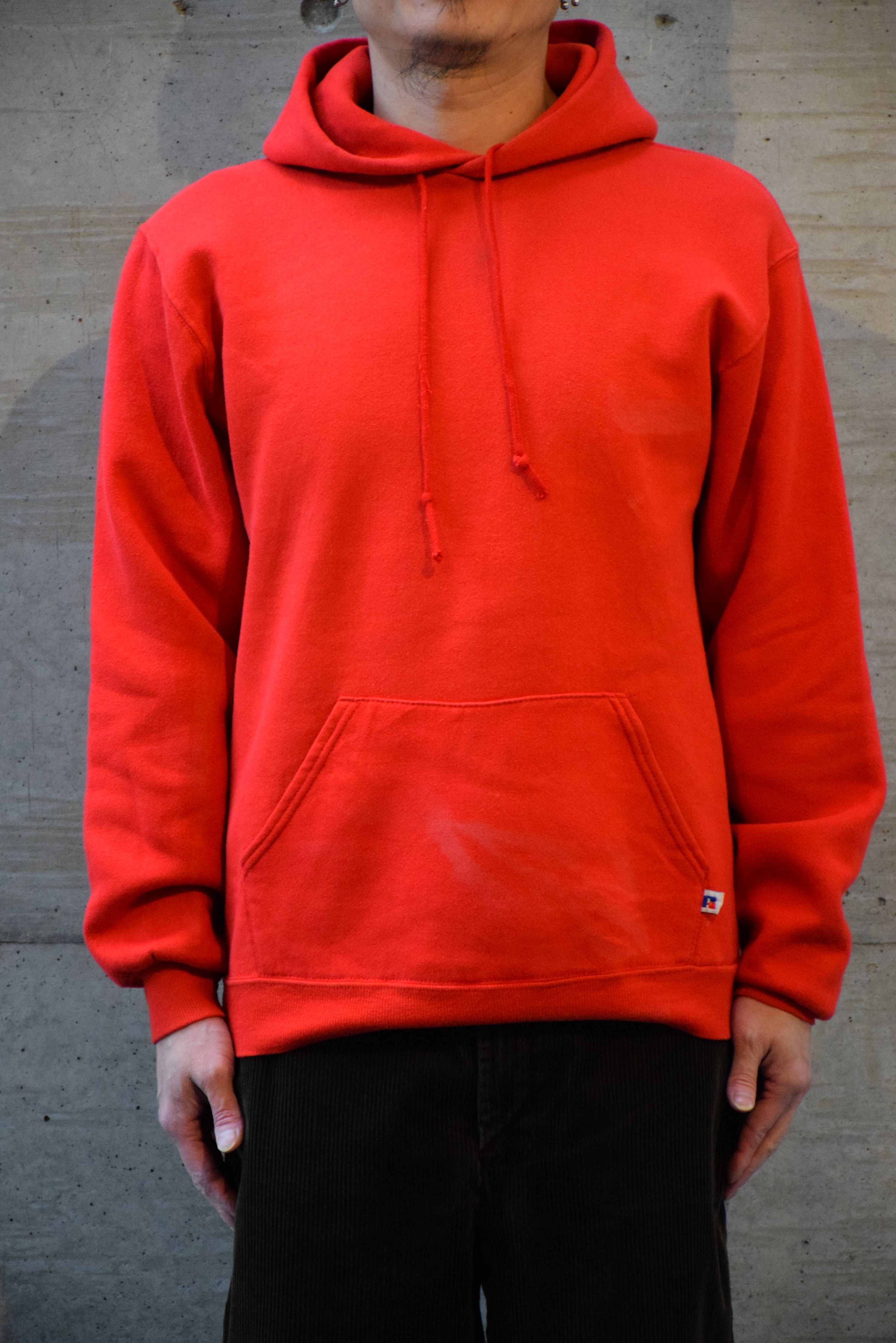80〜90's USA製 RUSSELL パーカー スウェット 無地 メンズ M レッド ラッセル トレーナー 古着 ヴィンテージ fc-2777 【25AWSW】
