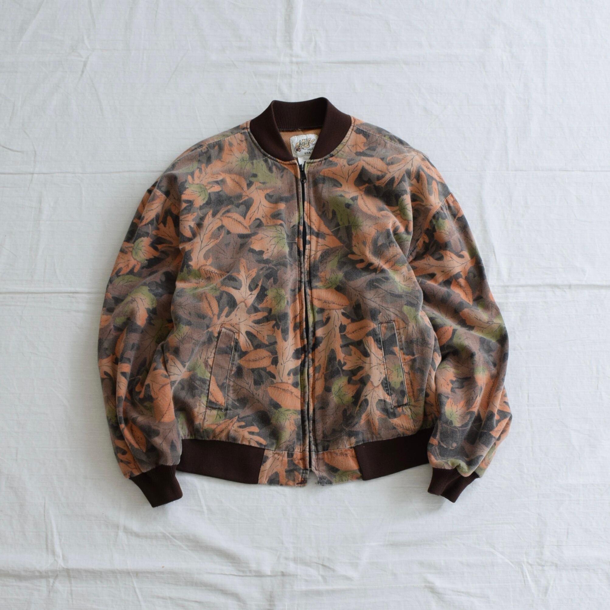 80's USA製 リアルツリー柄ジャケット ブルゾン メンズ XL オレンジ 古着 ヴィンテージ fc-2822 【25AWJK】
