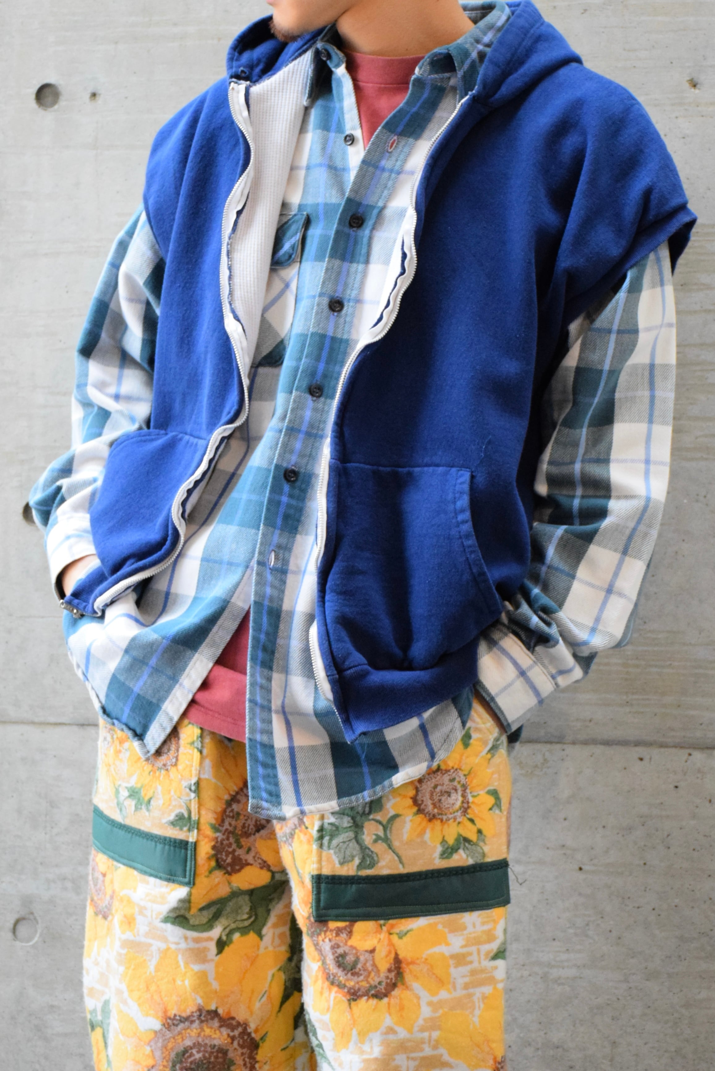 袖のないベストタイプなのでレイヤードして着用して頂けます。