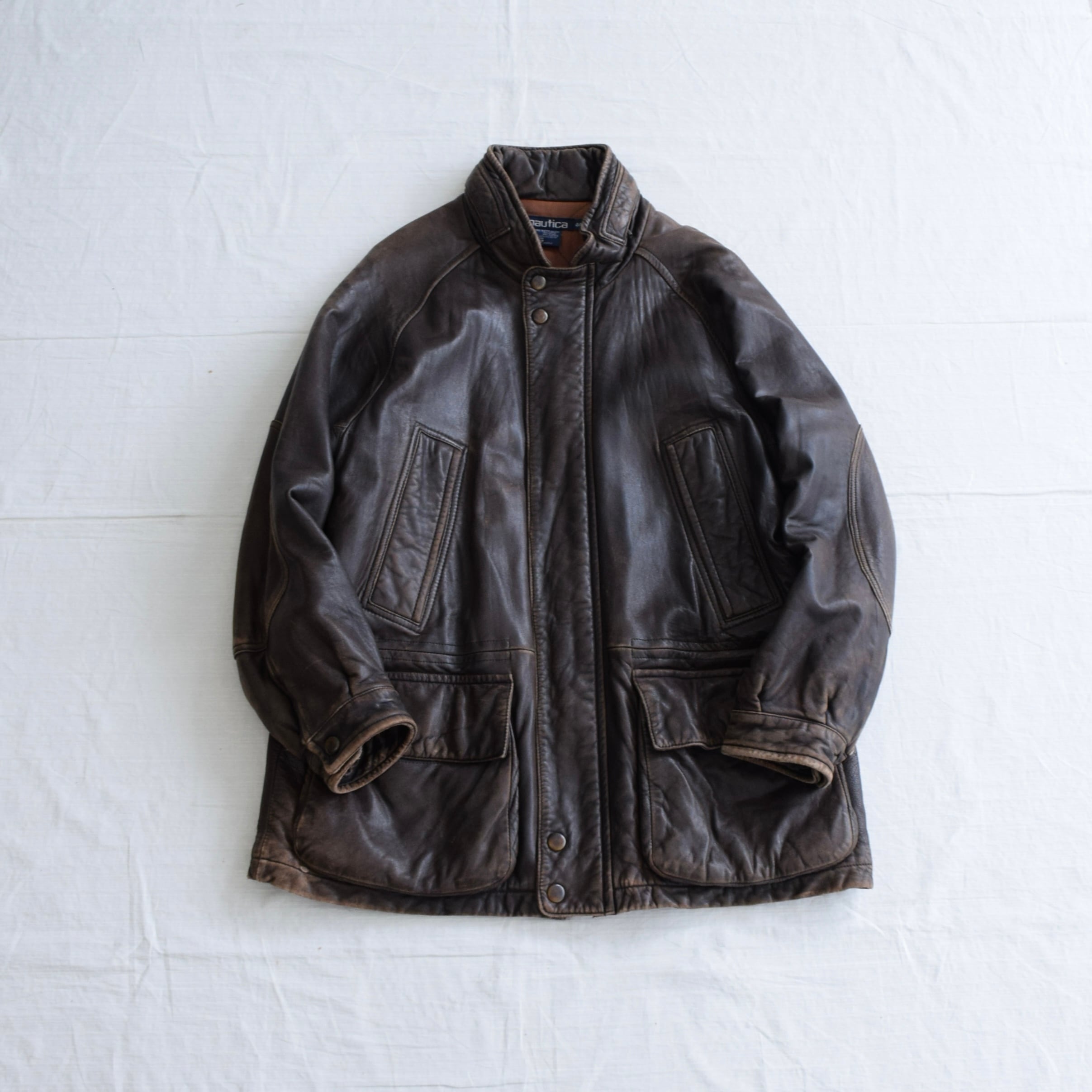 90's nautica レザージャケット メンズ 44 ブラウン ノーティカ コート 古着 ヴィンテージ N-127 【25AWJK】