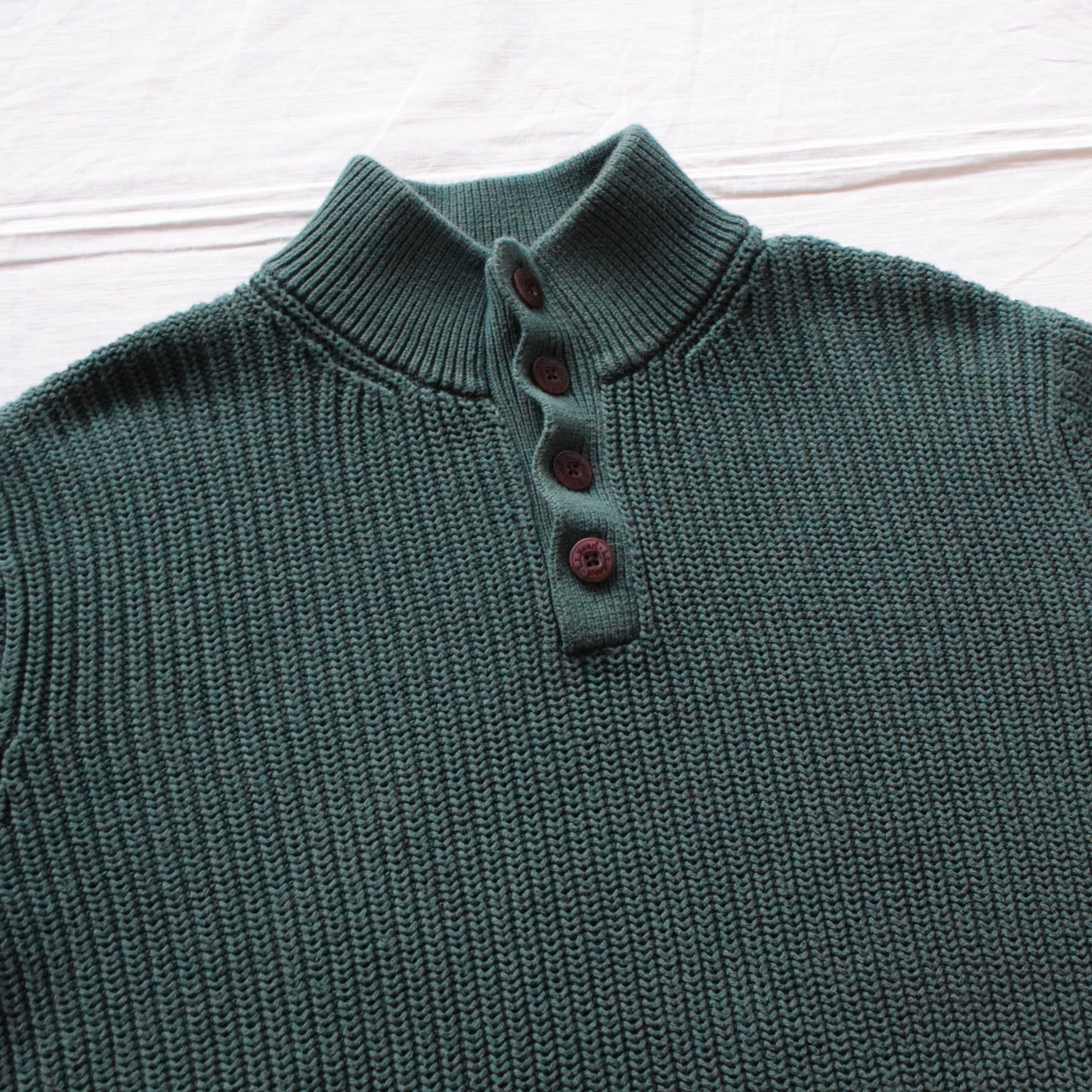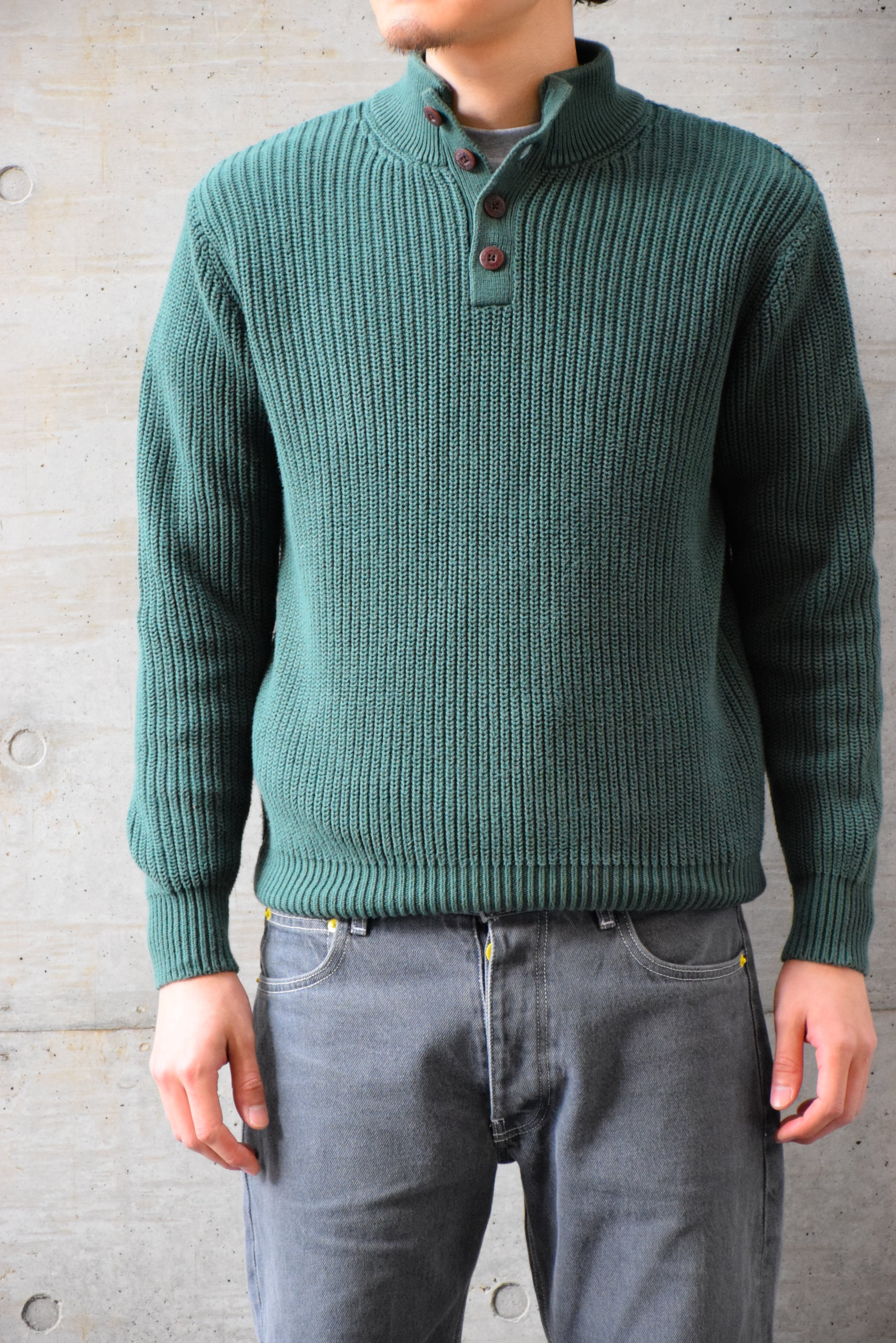 00's〜 L.L.Bean コットンニット ヘンリーネック メンズ M グリーン エルエルビーン 古着 ヴィンテージ fc-2837 【25AWSW】