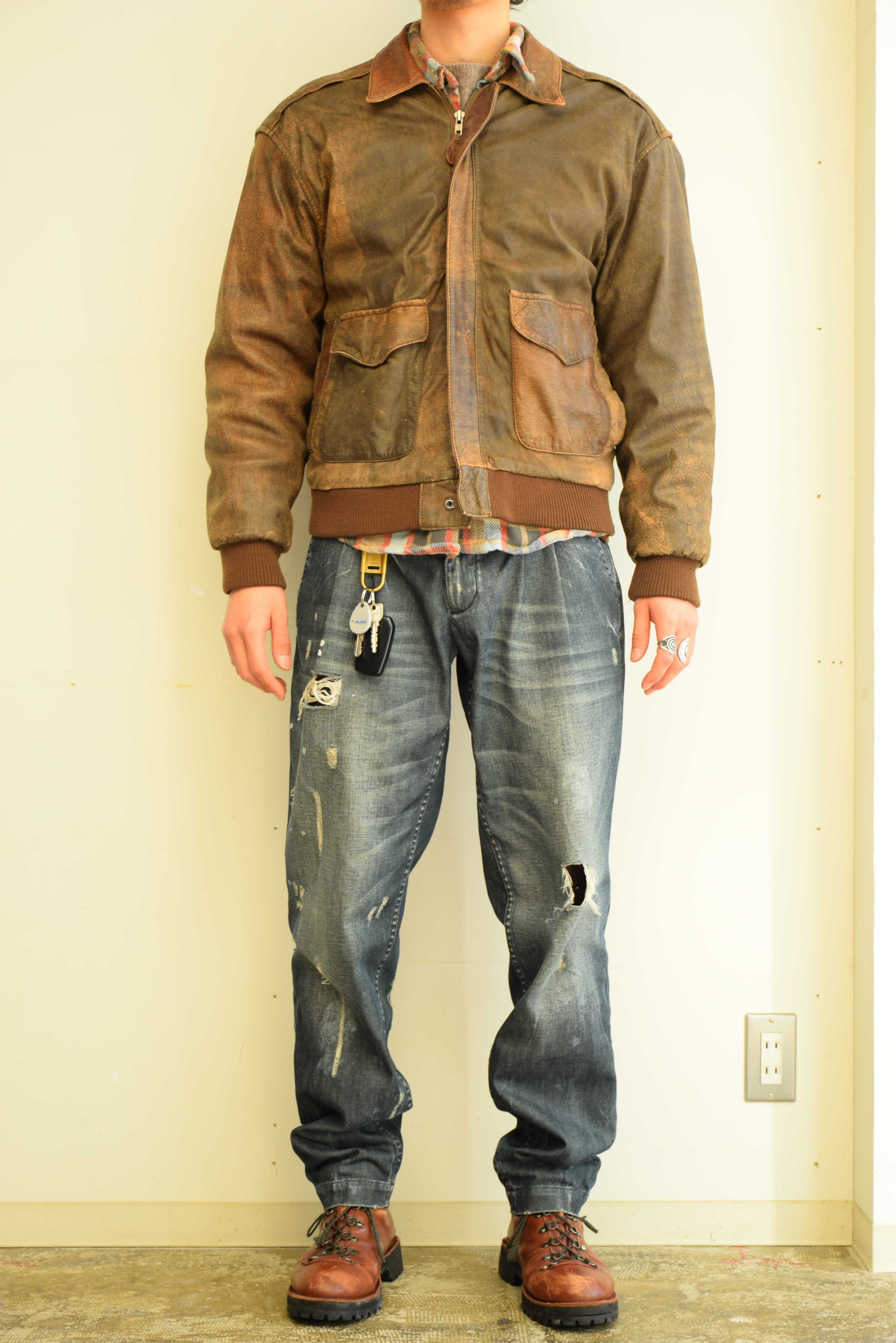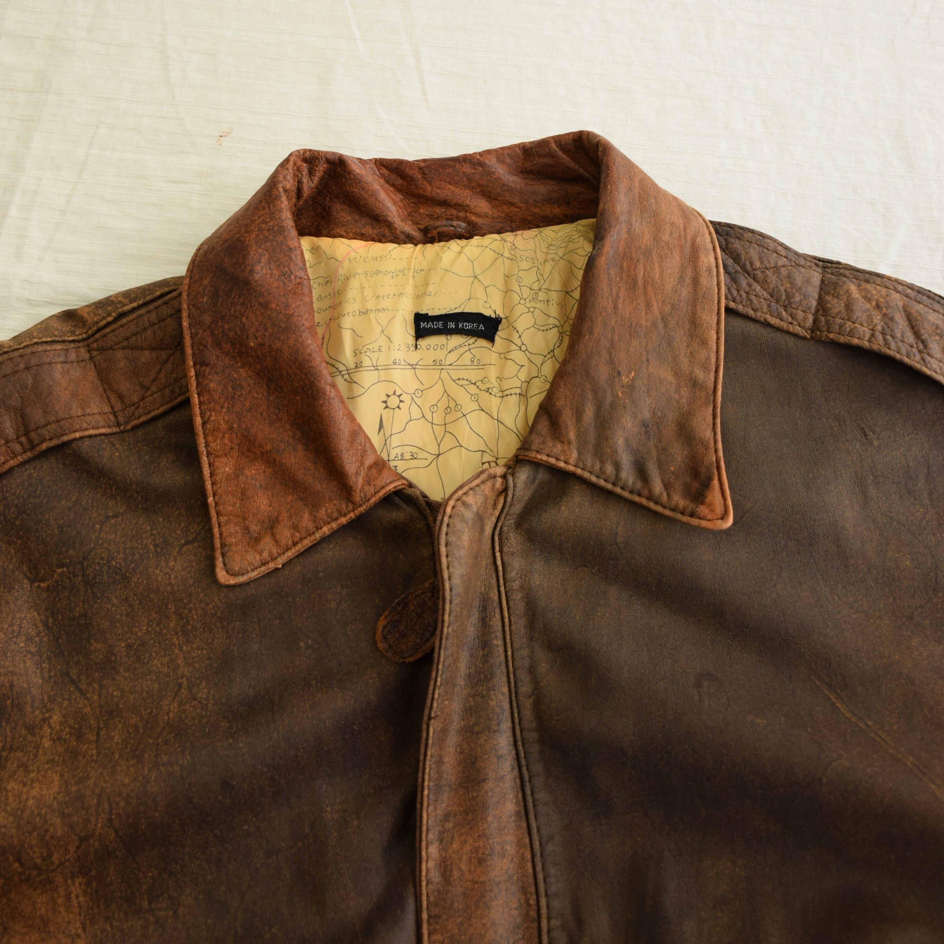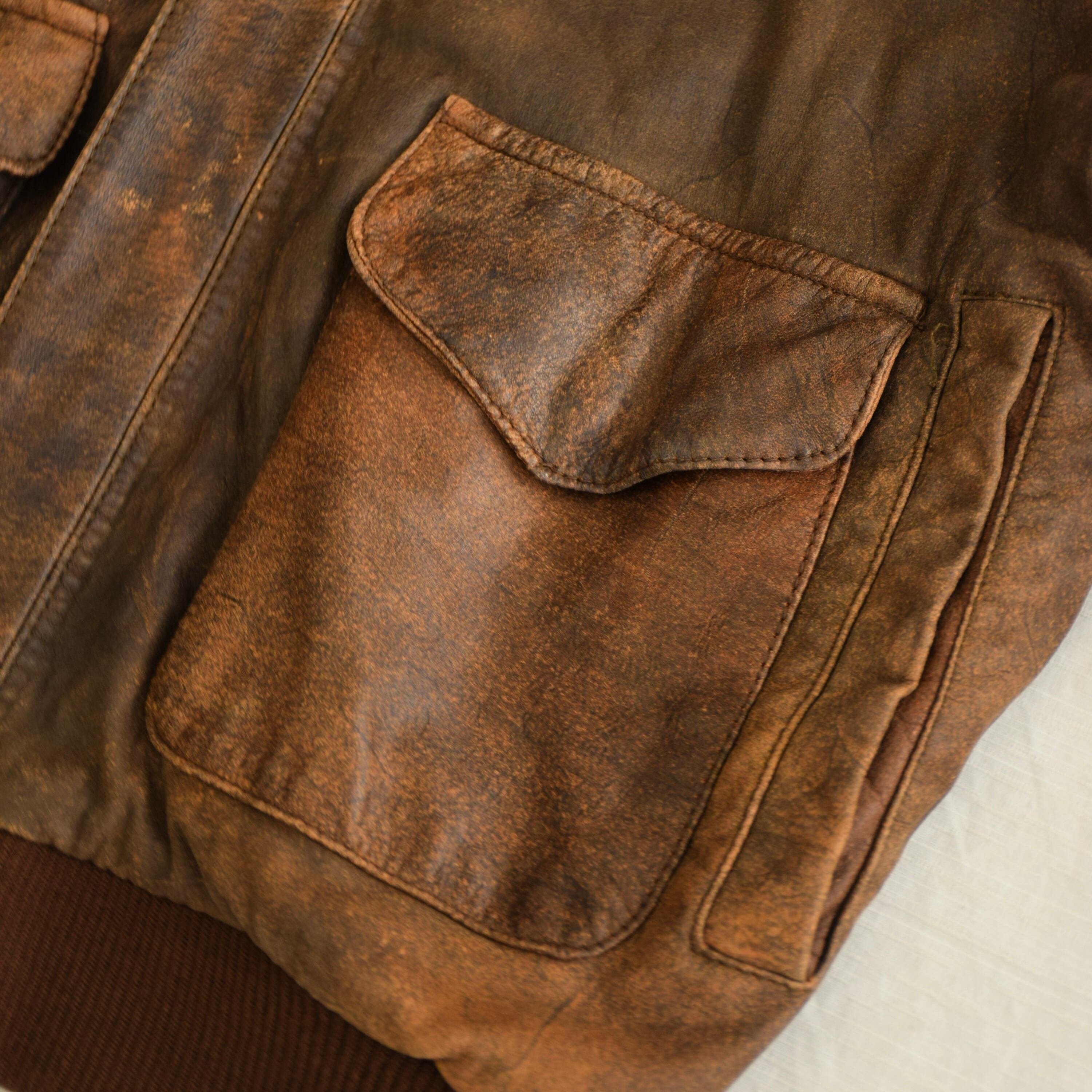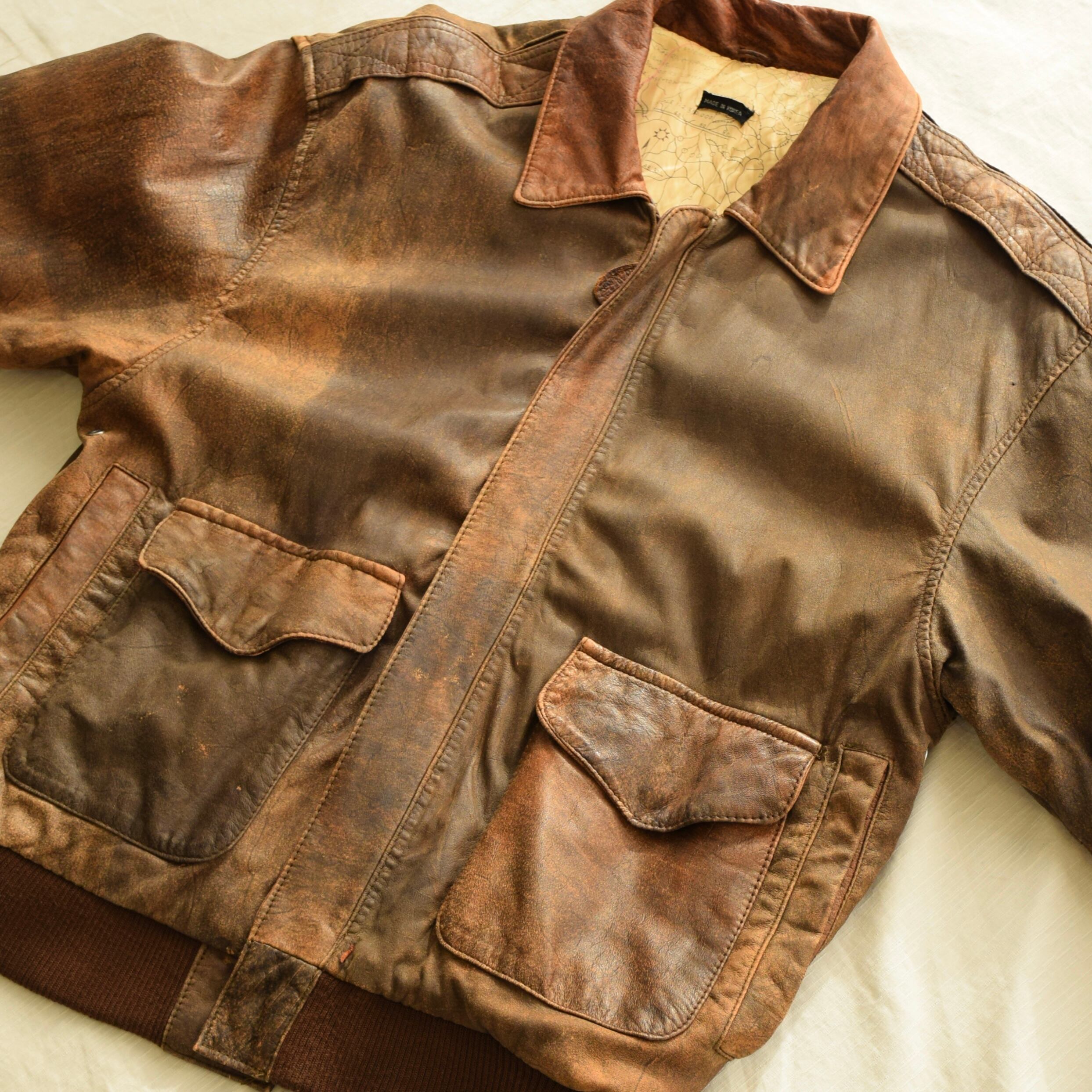 90's A-2 type レザージャケット メンズ ブラウン フライト ミリタリー 古着 ヴィンテージ fc-2853 【25AWJK】