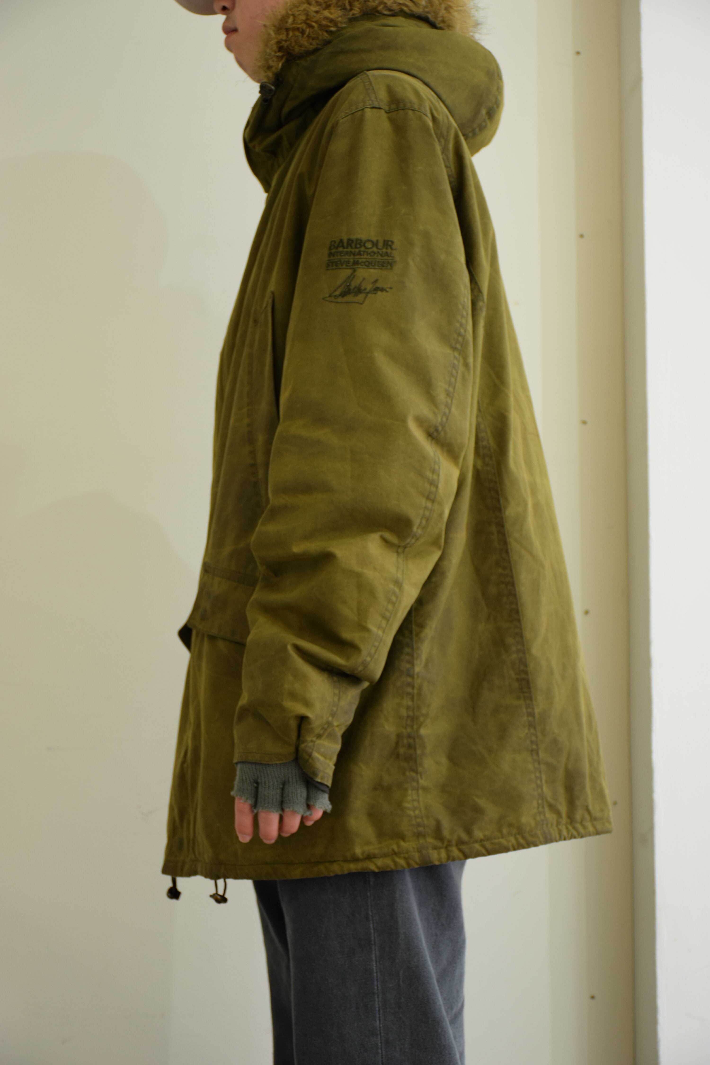 Barbour INTERNATIONAL Steve McQueen オイルドジャケット メンズ XL オリーブ バブアー 古着 ヴィンテージ fc-2866 【25AWJK】
