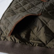 ハンティングベストをモチーフとしたデザインでスエードのショルダーパッドや背面のゲームポケットが特徴。