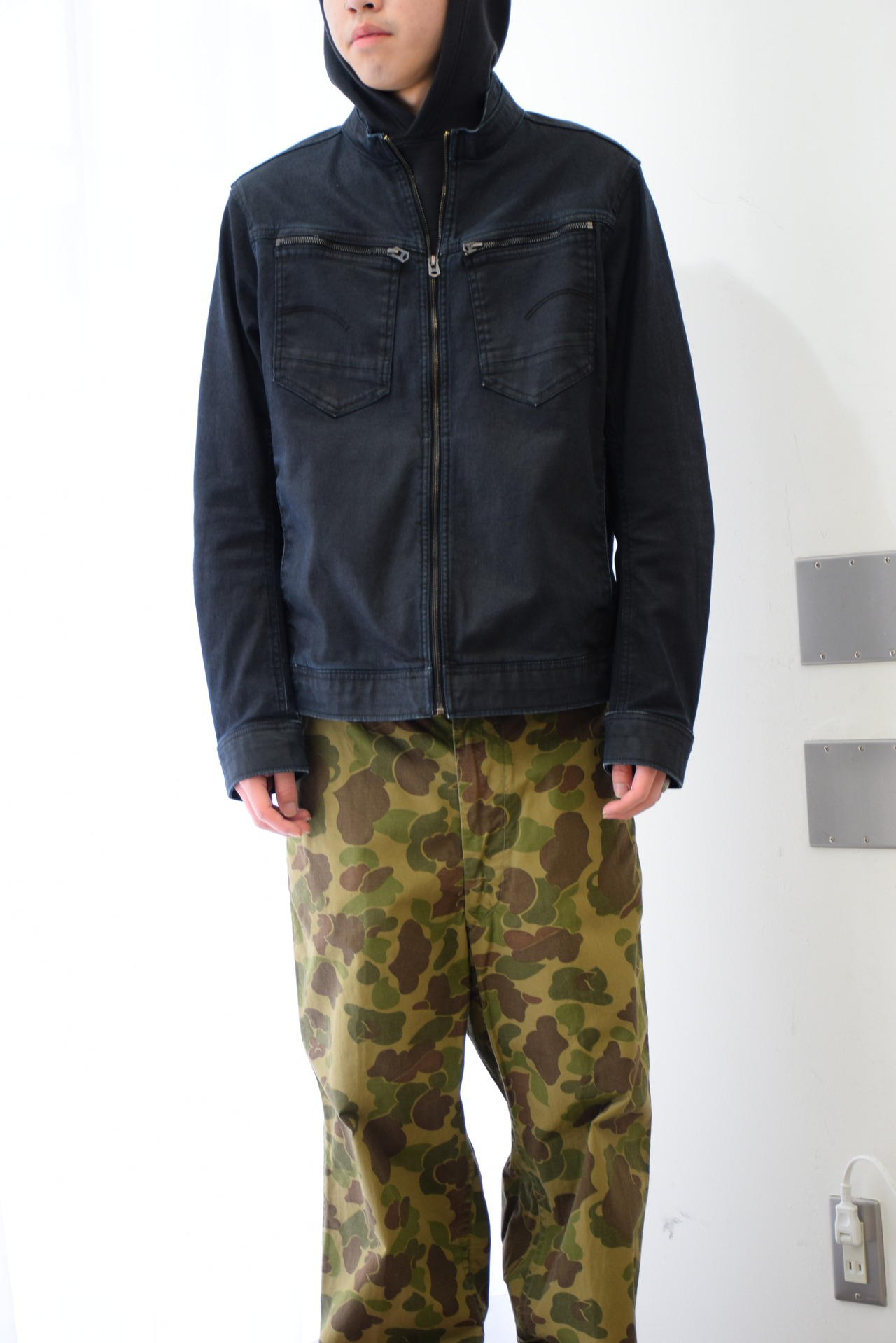 ブラックデニムという落ち着いた色味ながらもデザイン製に優れているため、しっかりと主張してくれるような1着です。