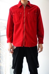 00's コーデュロイシャツ ジップアップ メンズ M レッド 古着 ヴィンテージ fc-2928 【26AWNS】