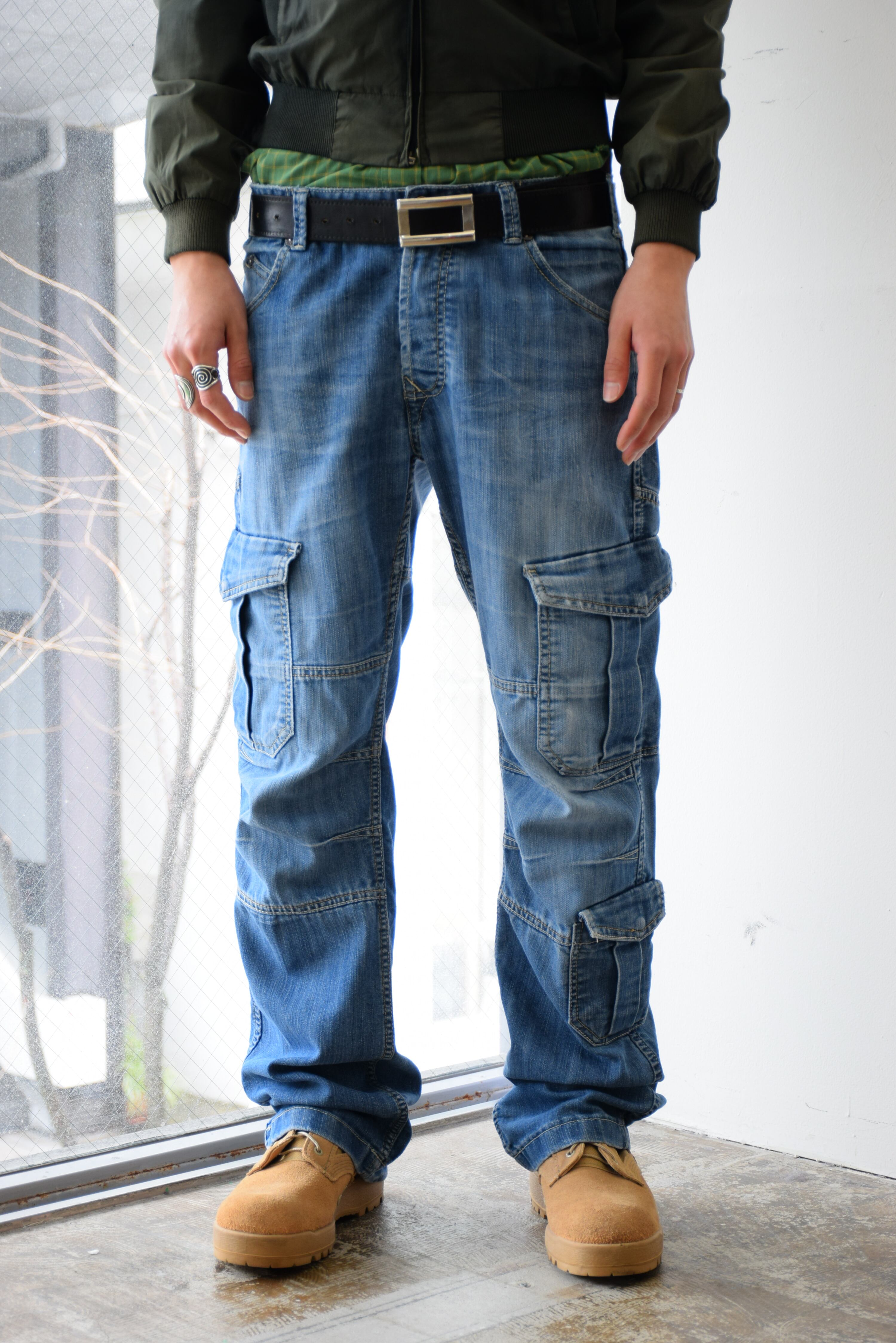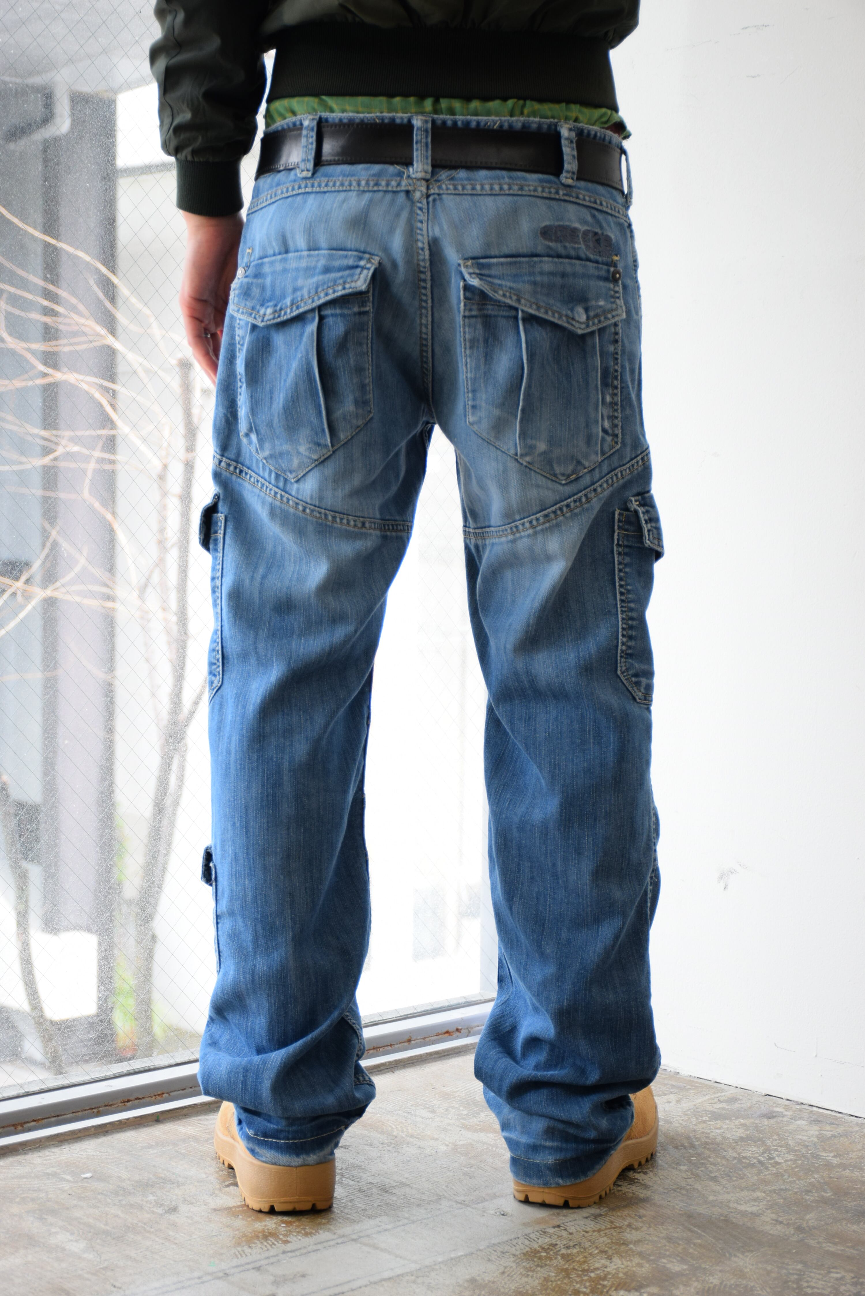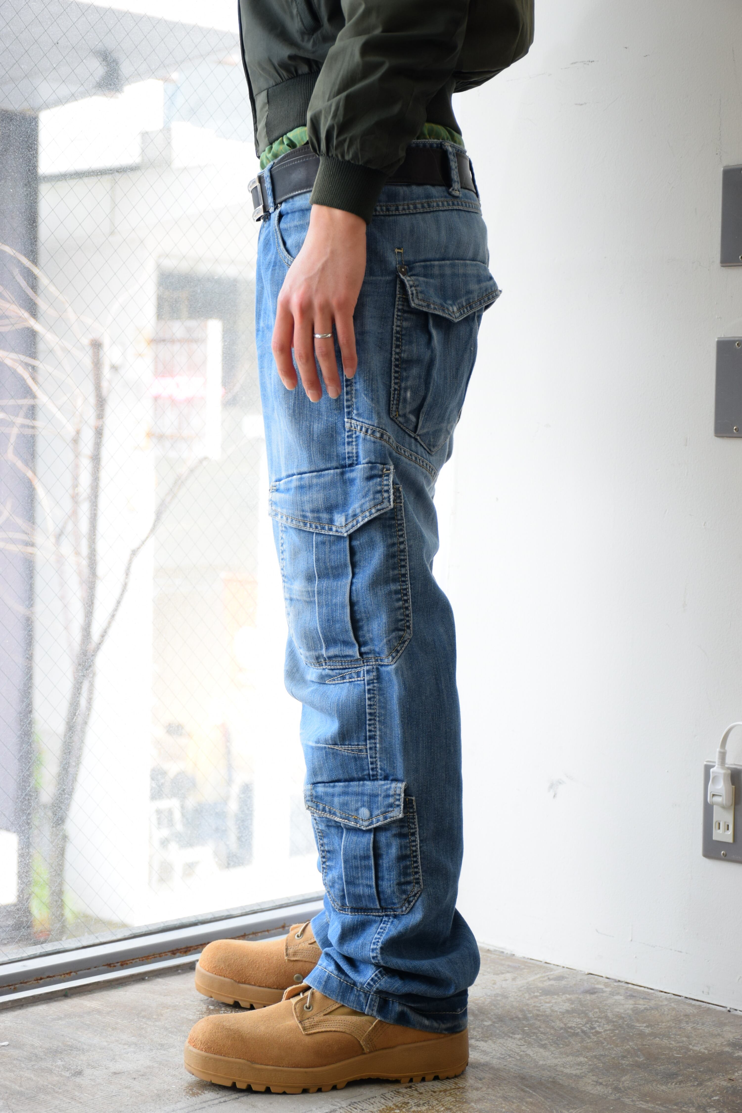 Y2K ローライズ デニムカーゴパンツ メンズ W34 L32 ブルー ギミックパンツ 古着 ヴィンテージ fcp-789 【26AWP】