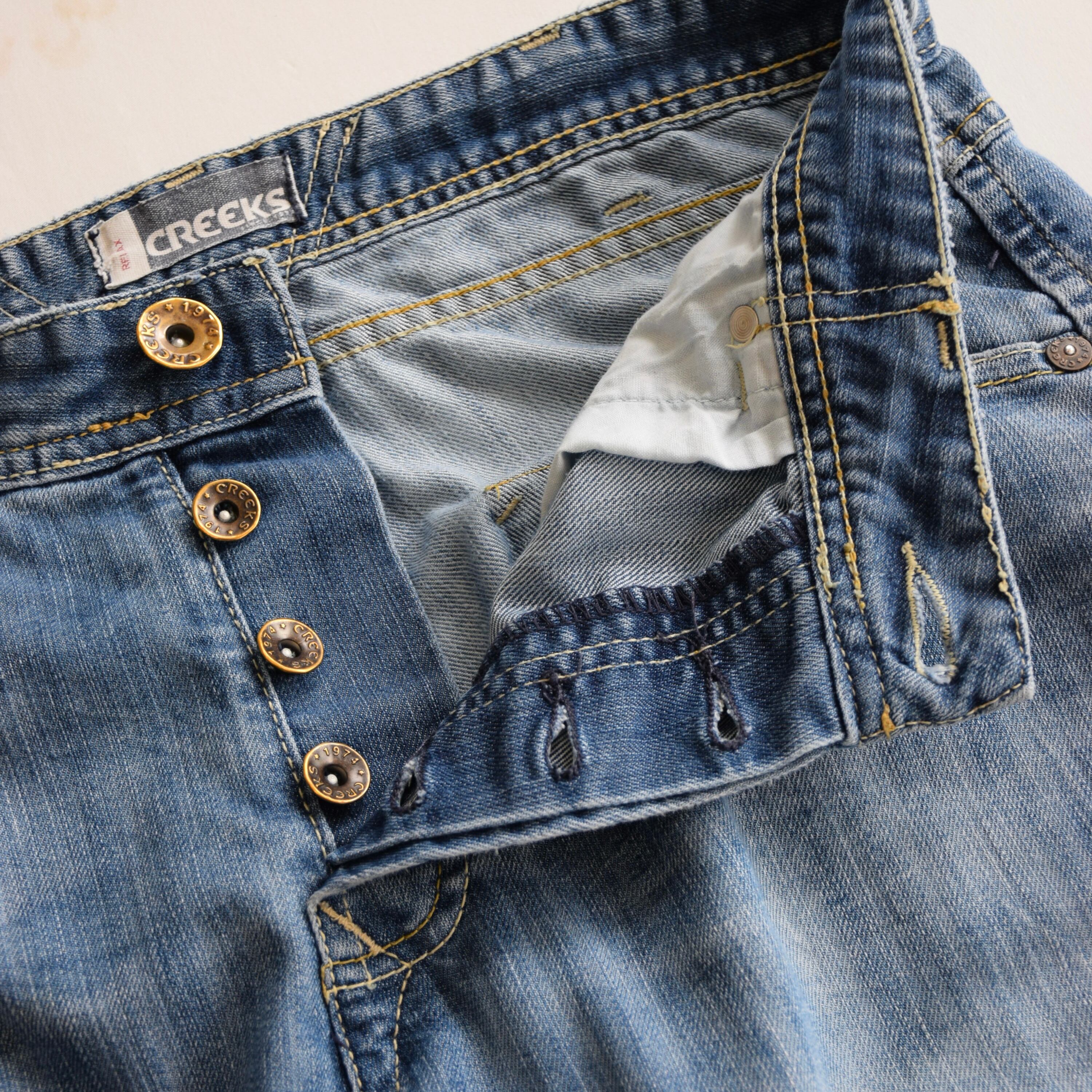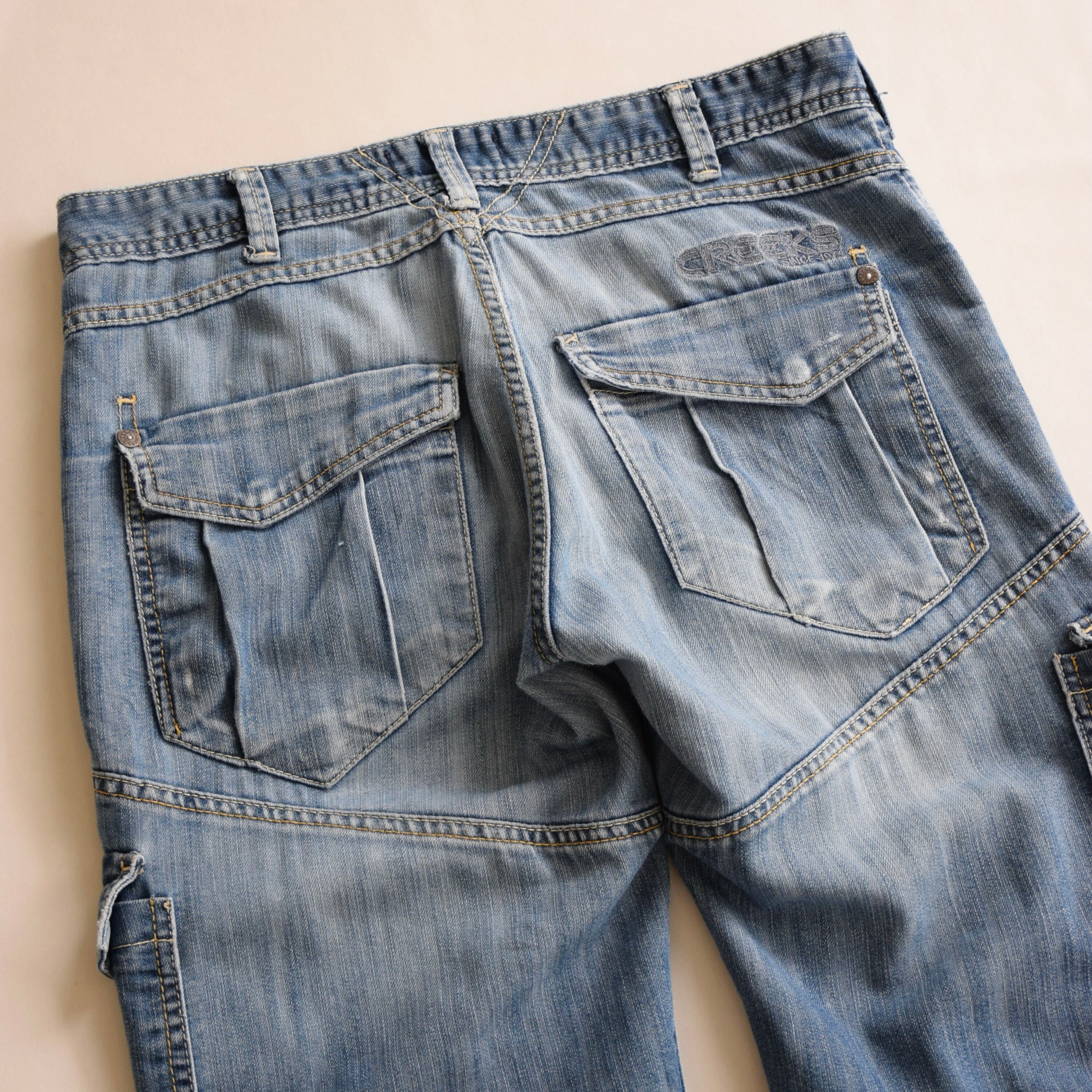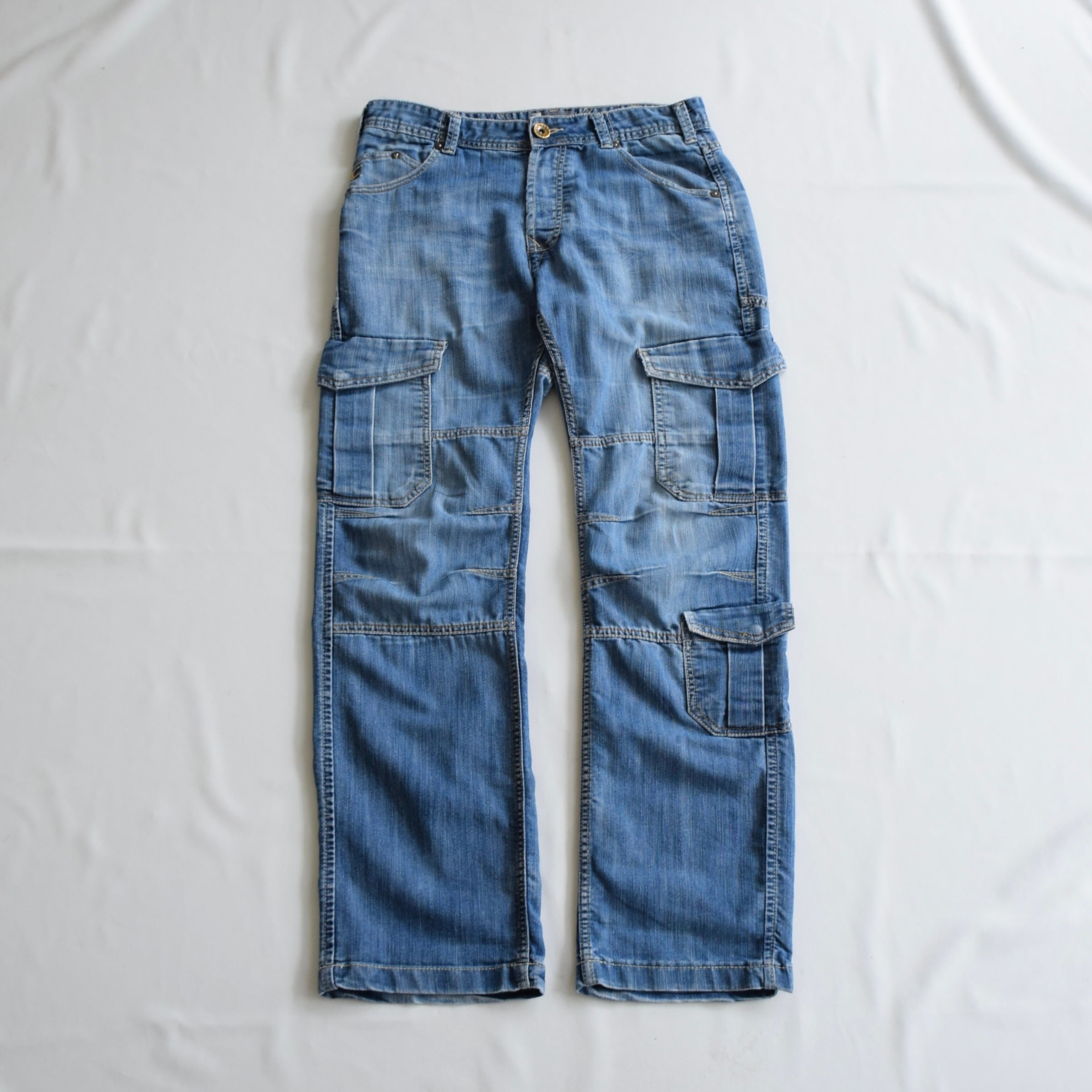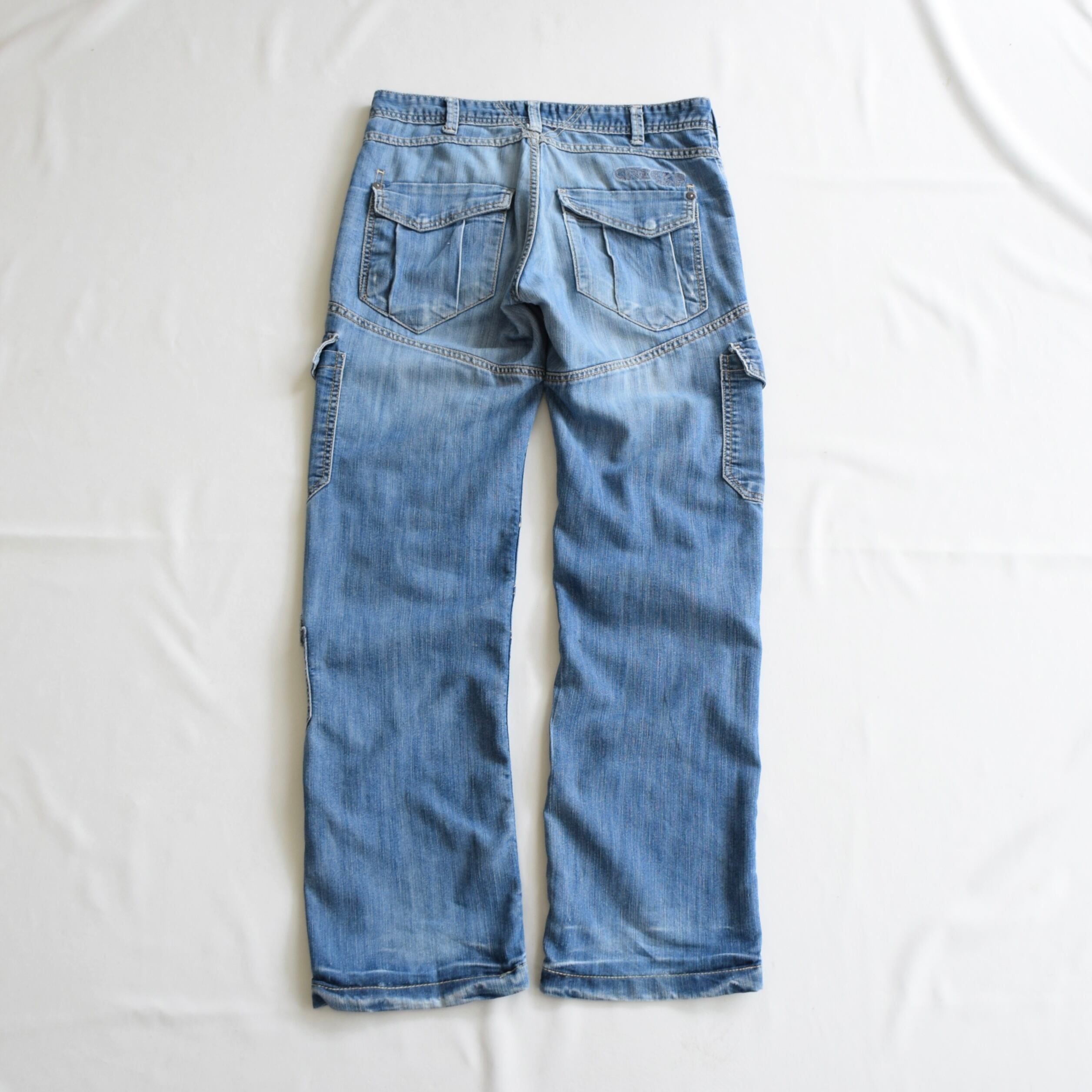 Y2K ローライズ デニムカーゴパンツ メンズ W34 L32 ブルー ギミックパンツ 古着 ヴィンテージ fcp-789 【26AWP】