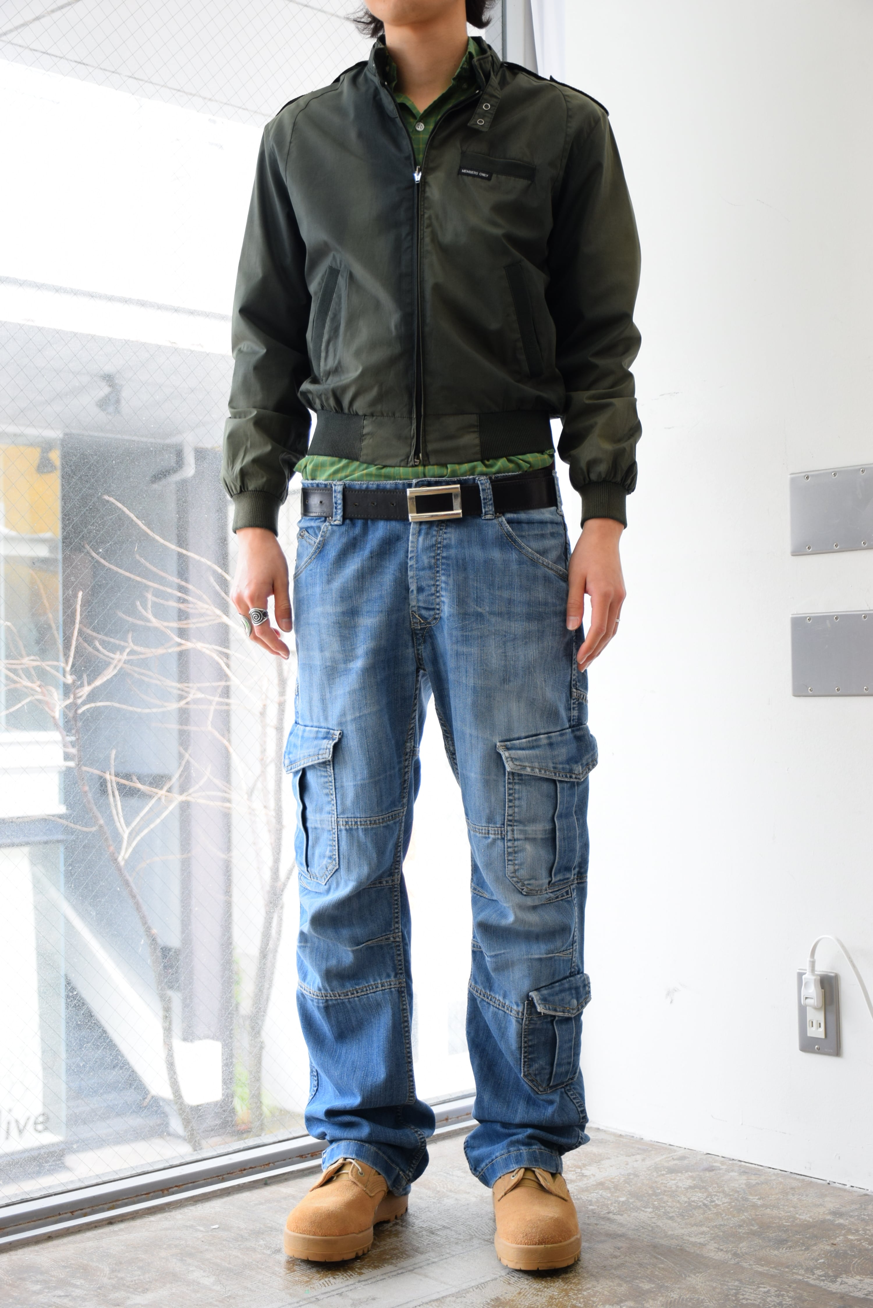 ウエストはバックルの大きいベルト、シューズはブーツなどと合わせていただくと◎