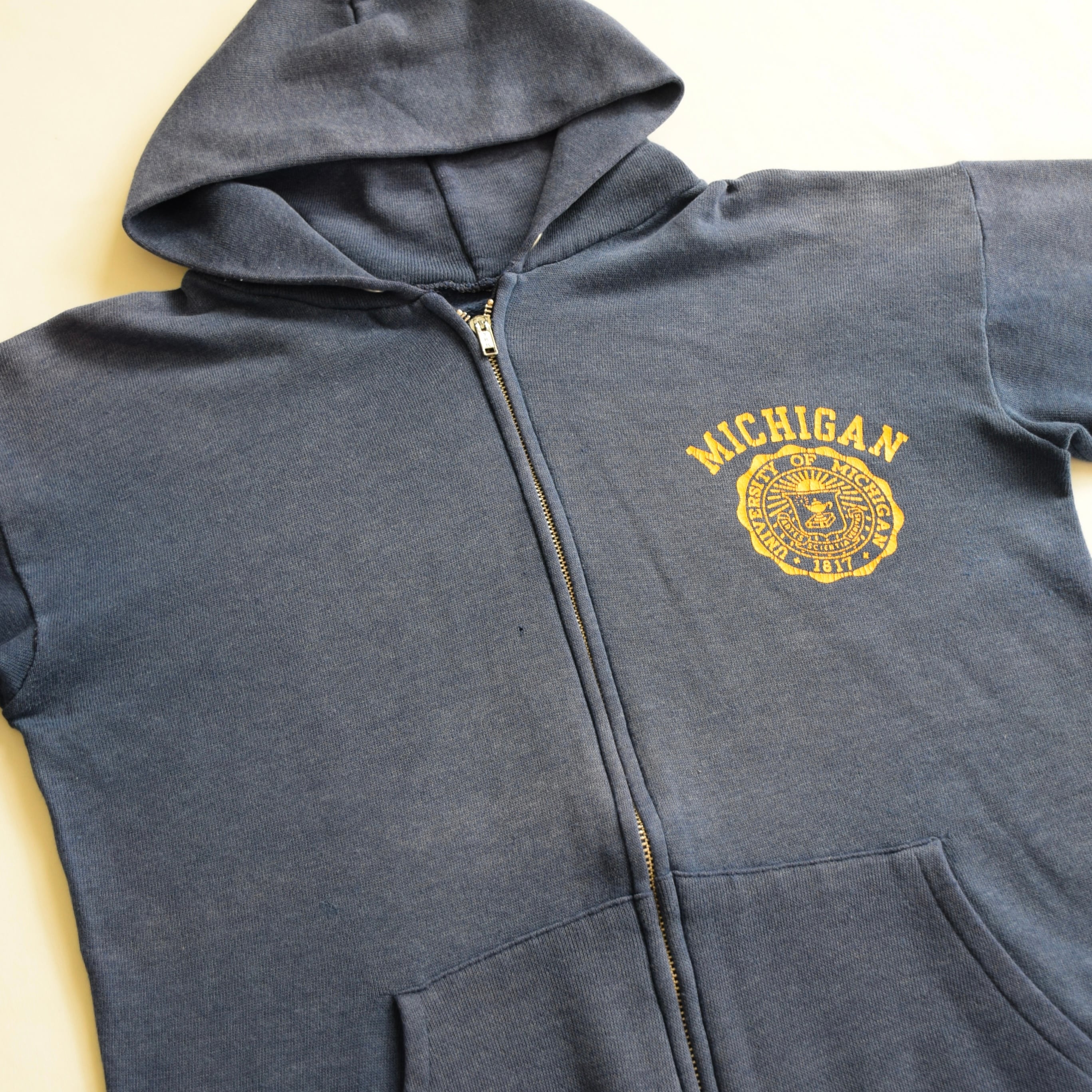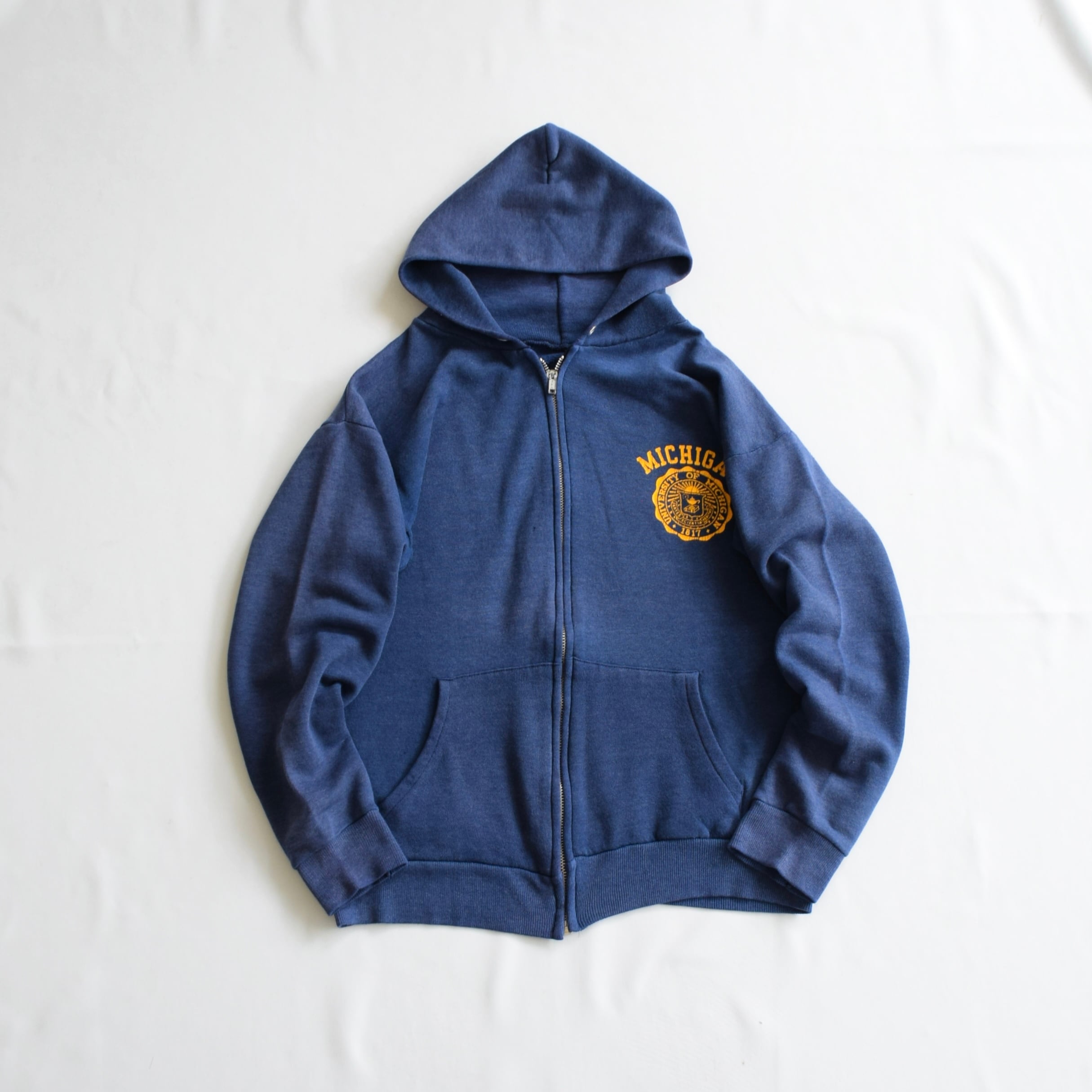 80's ジップパーカー MICHIGAN ミシガン メンズ ネイビー フーディー カレッジ 古着 ヴィンテージ fc-2936 【26AWSW】