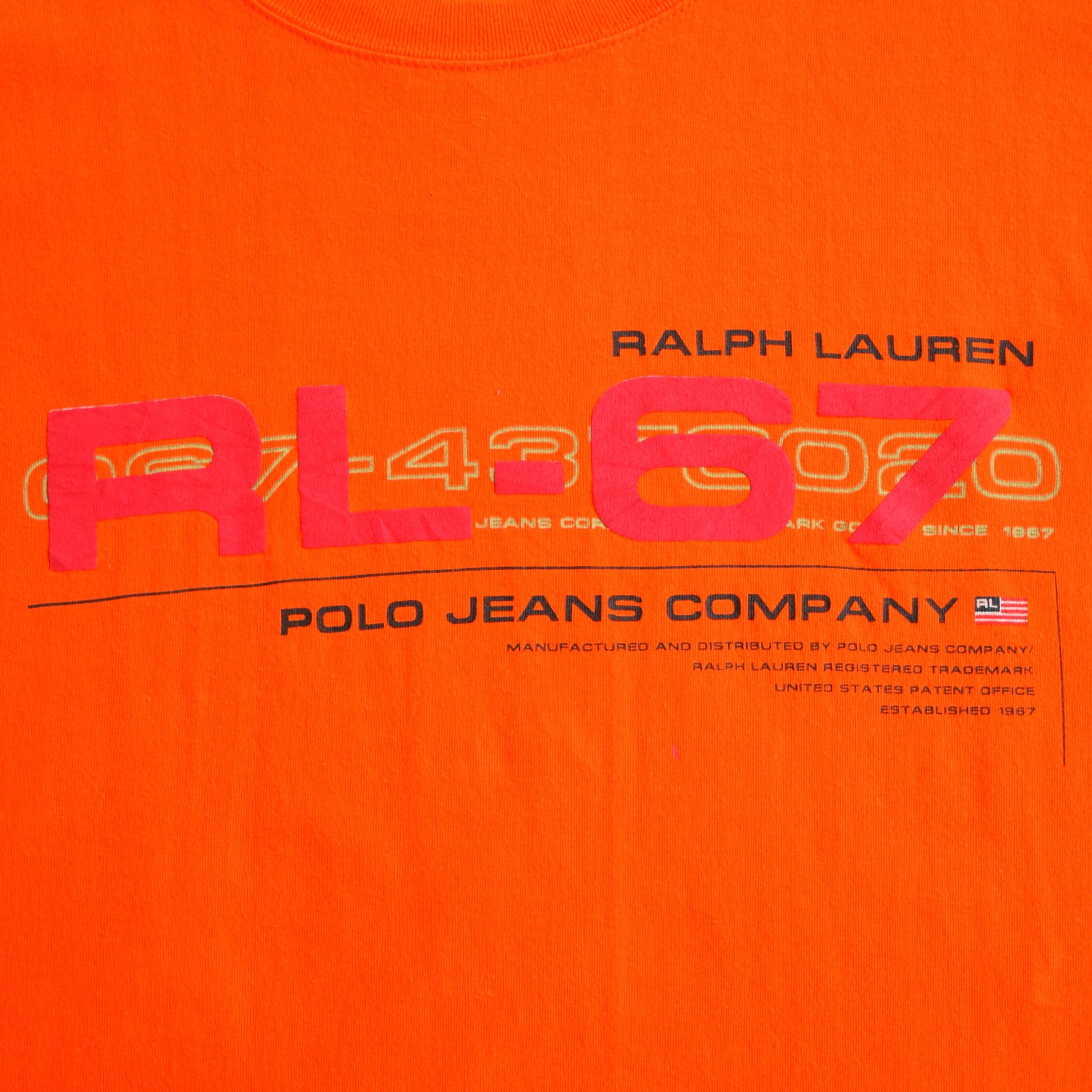 90's USA製 Polo Jeans Co. Tシャツ メンズ XL オレンジ ラルフローレン Ralph Lauren 古着 ヴィンテージ fc-2938 【26AWT】