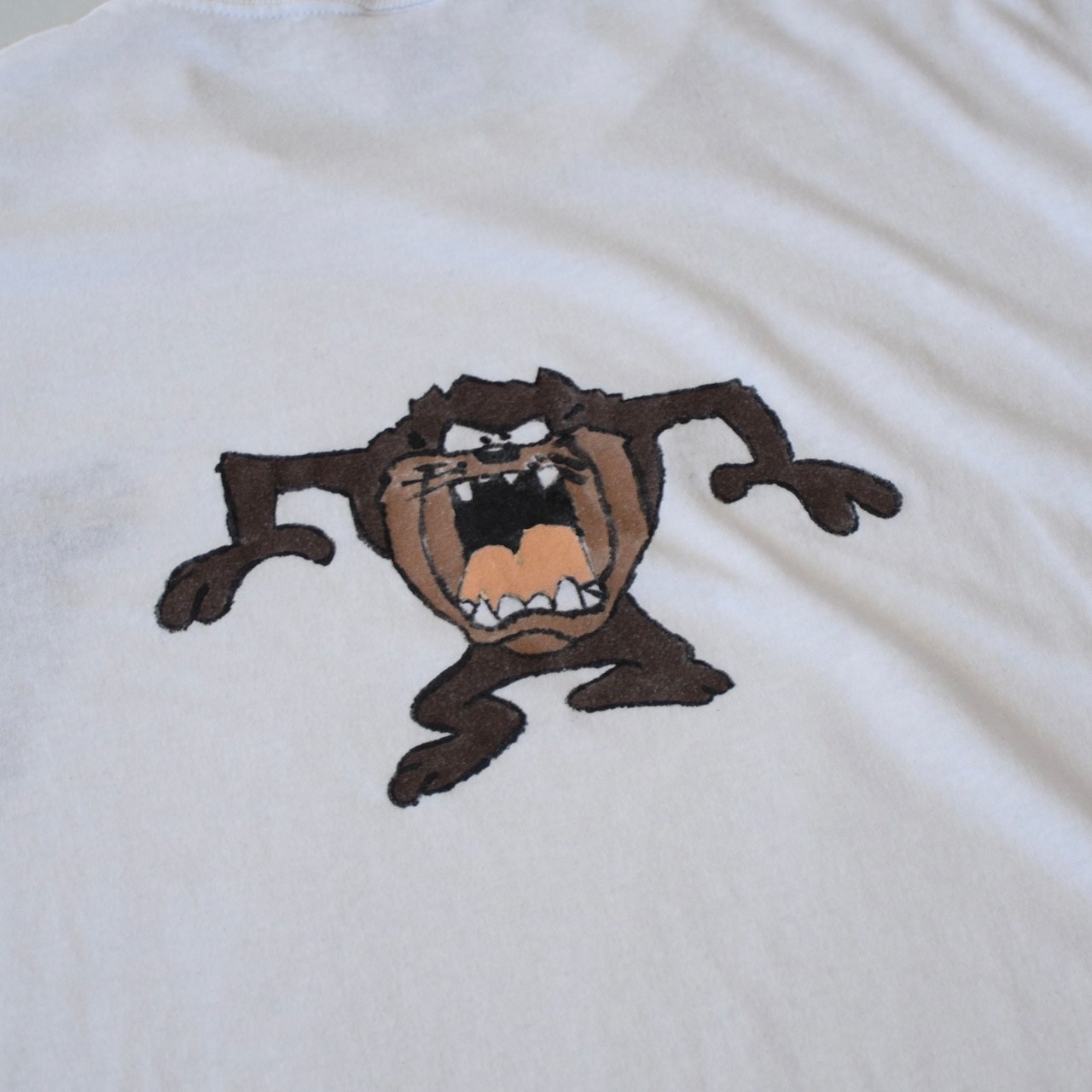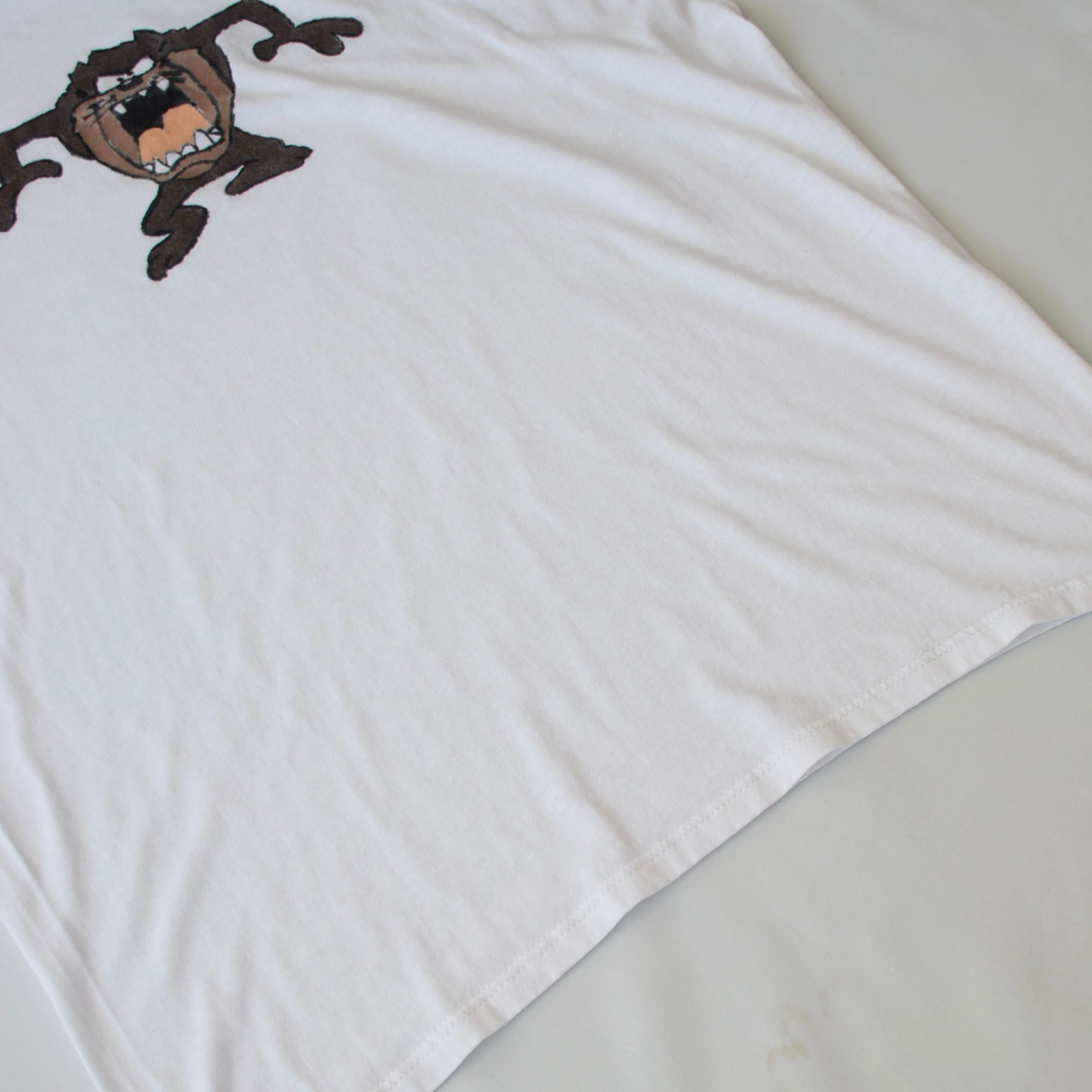 90's USA製 ワーナー・ブラザーズ Tシャツ メンズ L ホワイト ハンドペイント キャラT キャラクター 古着 ヴィンテージ fc-2975 【26AWT】