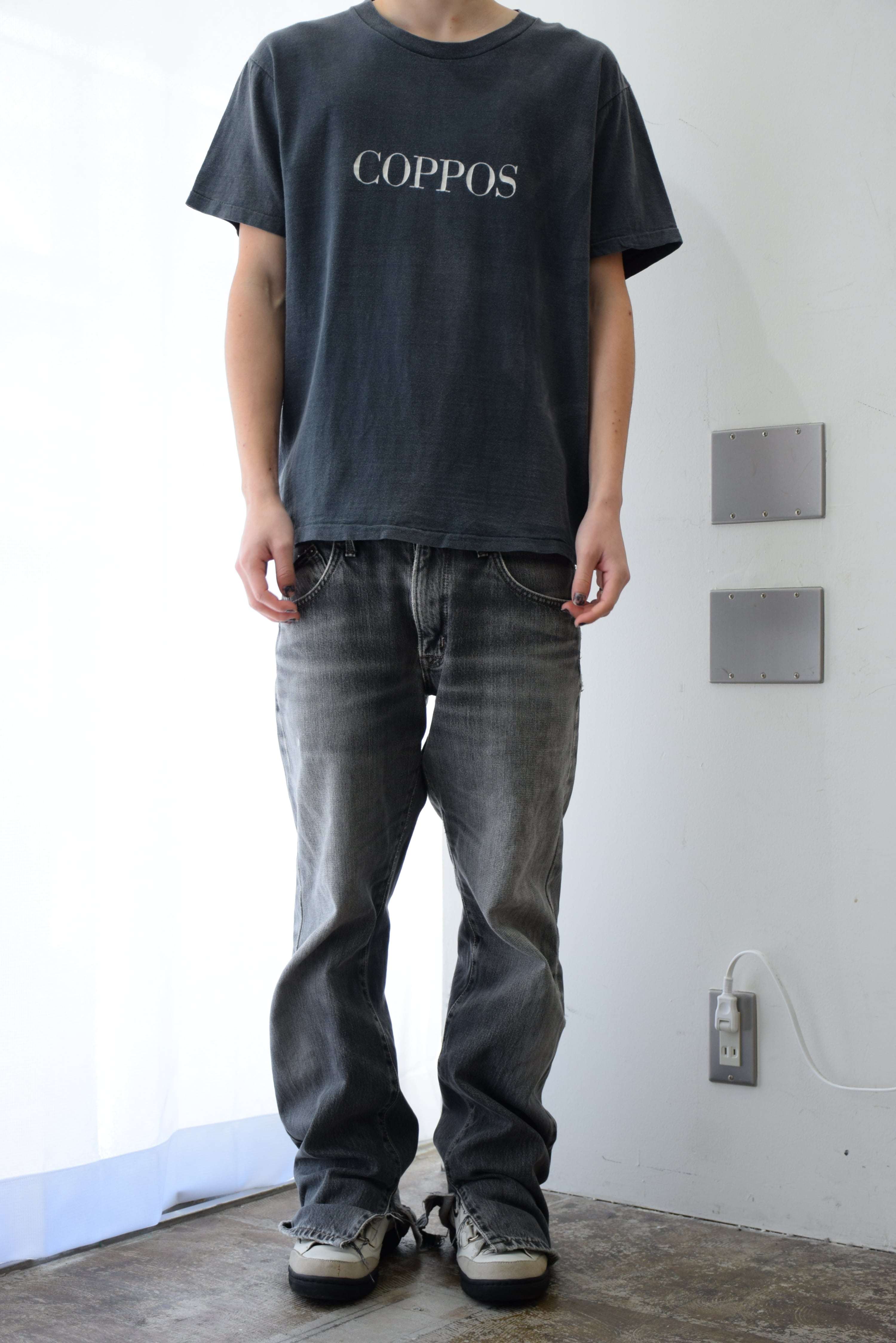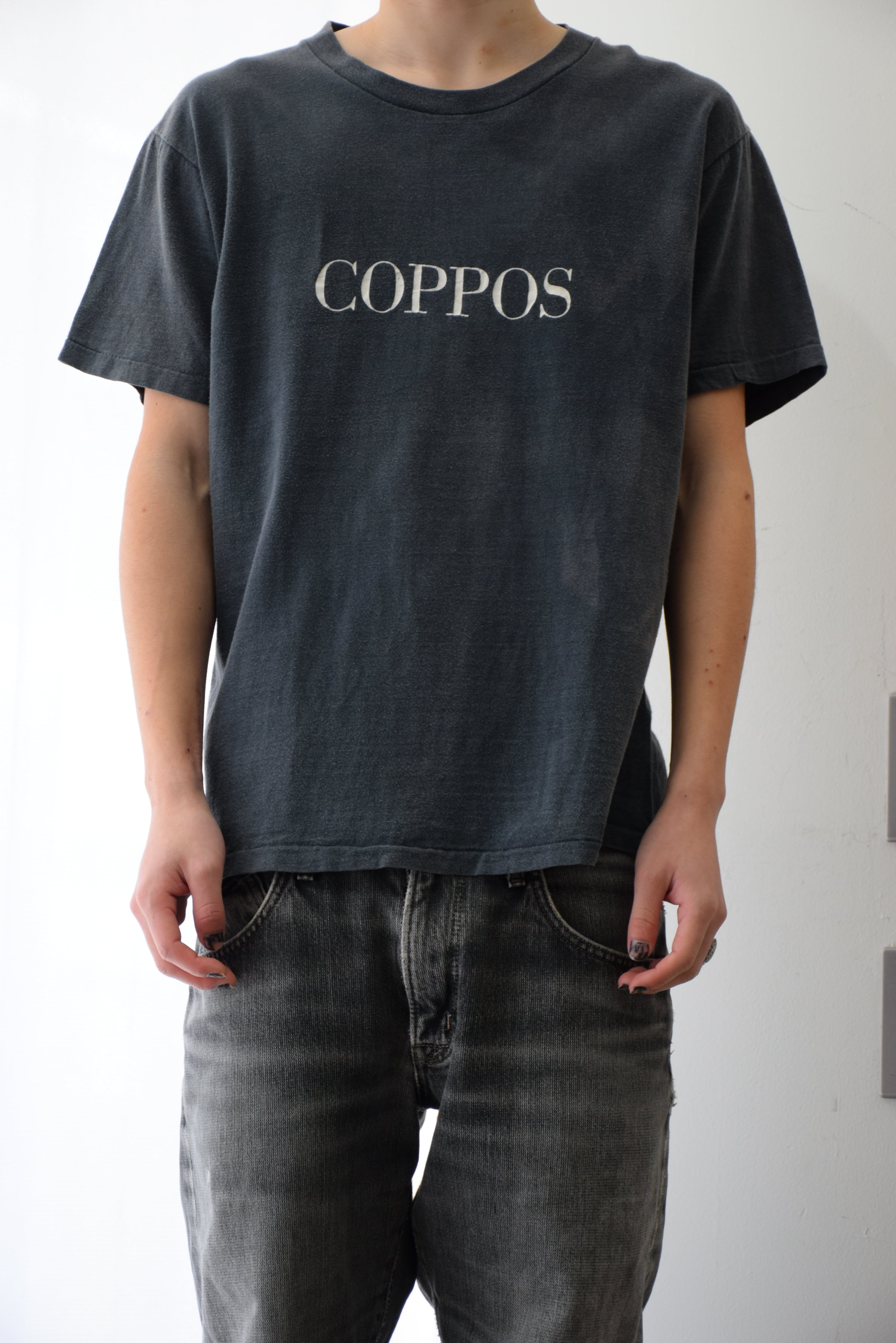 90's USA製 文字系 Tシャツ メンズ L グレー フェード COPPOS 古着 ヴィンテージ fc-2978 【26AWT】