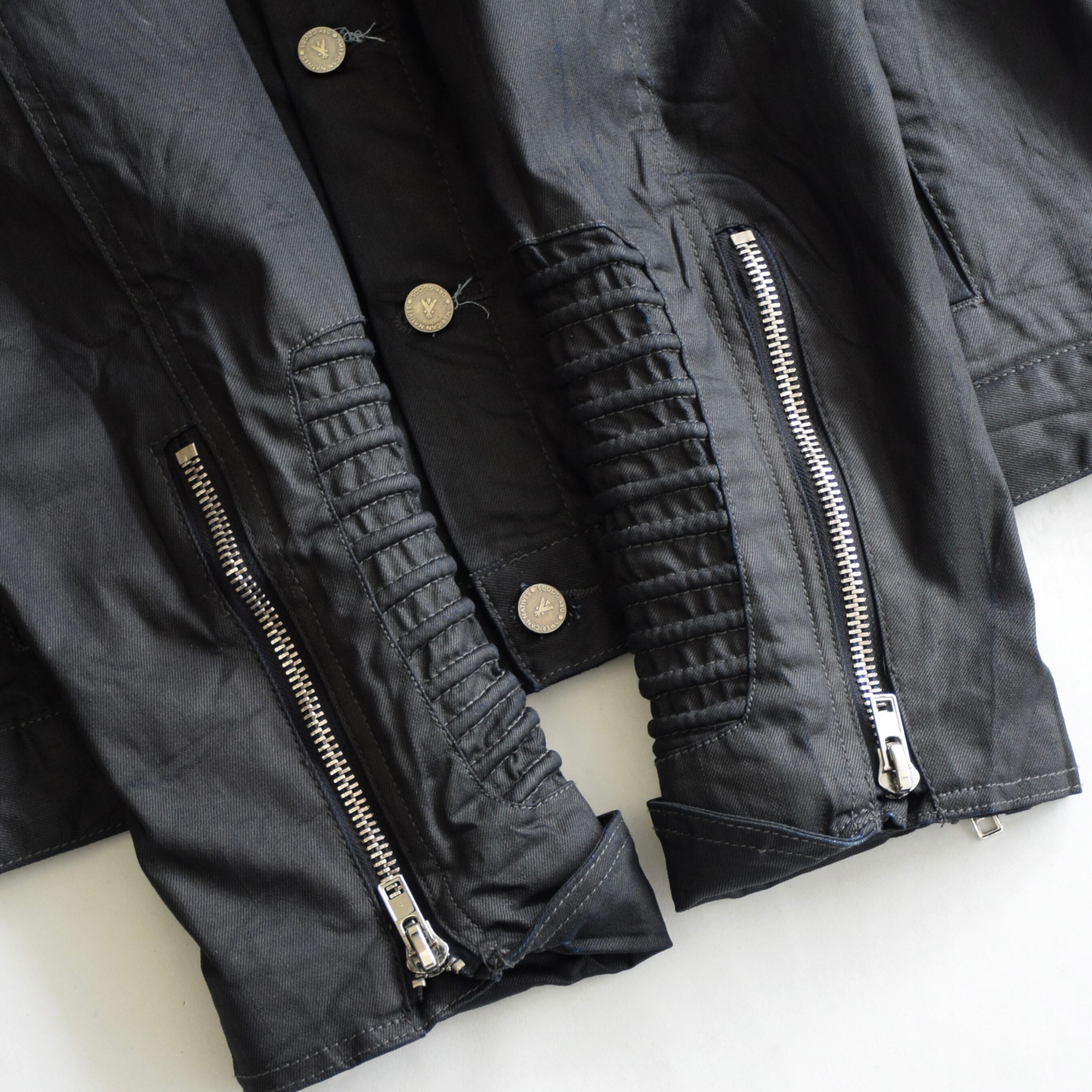 袖がジップになっておりライダースの様な作りになっているのもカッコ良いです。