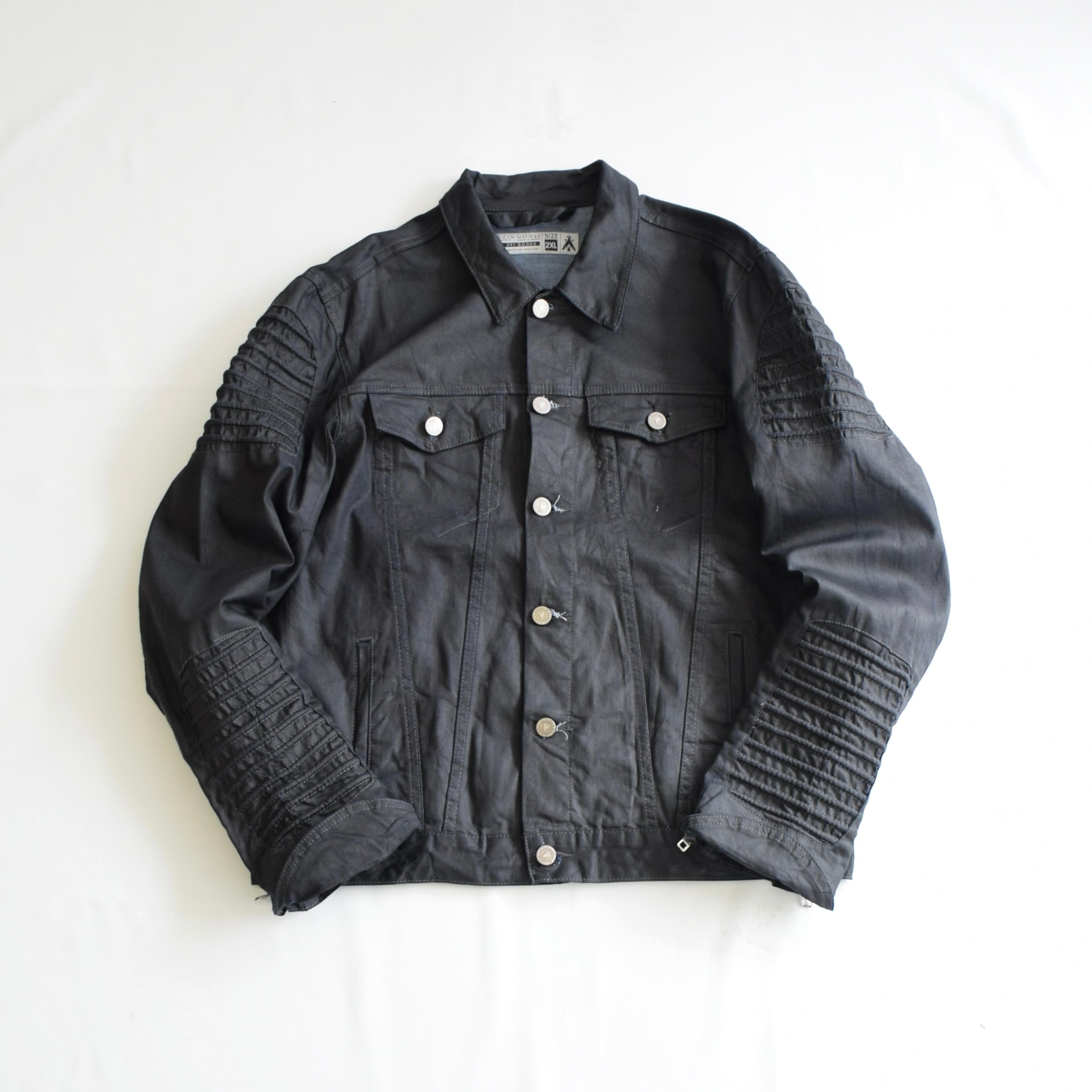 Y2K デニムジャケット メンズ 2XL ブラック トラッカージャケット 古着 ヴィンテージ fc-2995 【26AWJK】