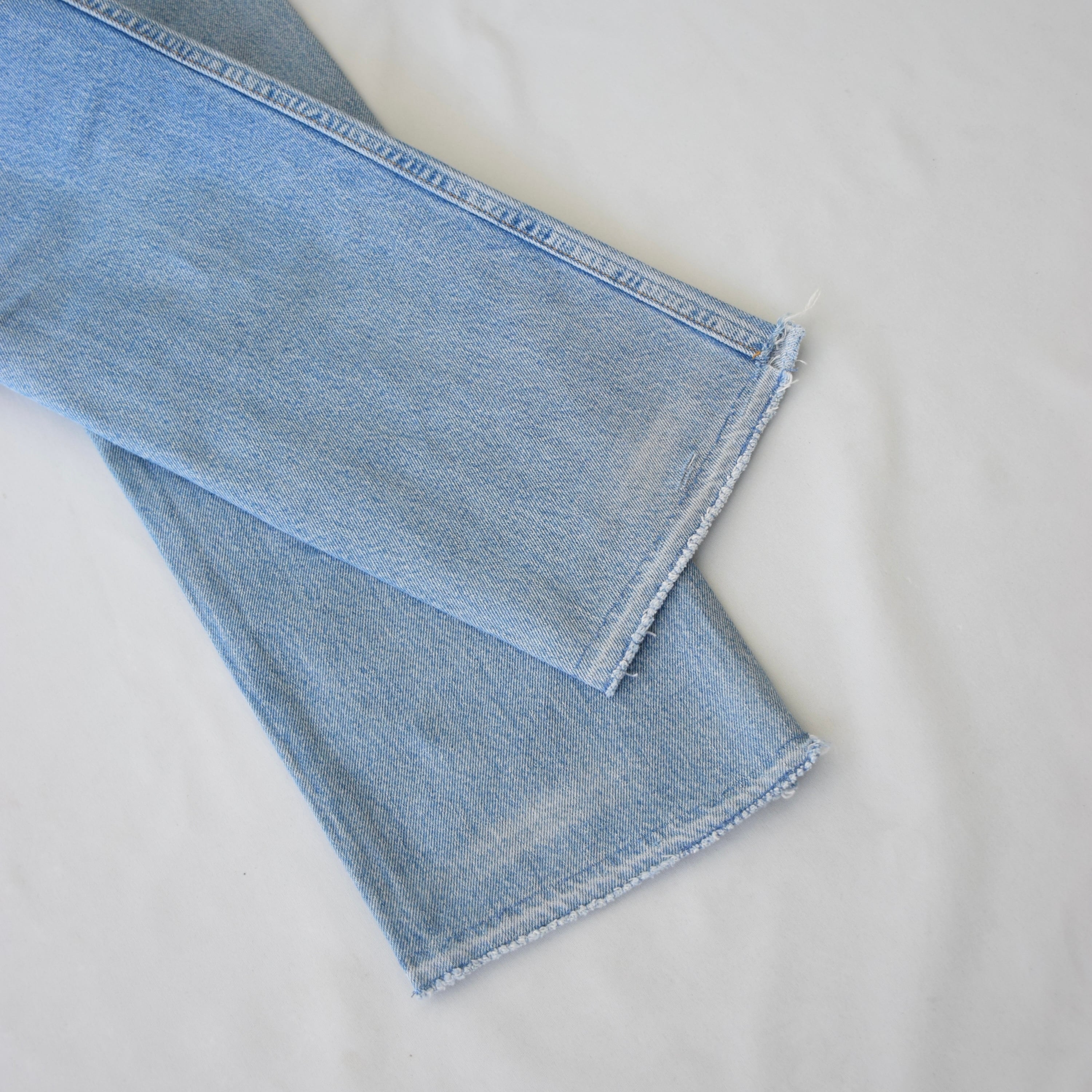 こちらの個体は裾ステッチがほつられておりロックがかけられている独特な個体です。