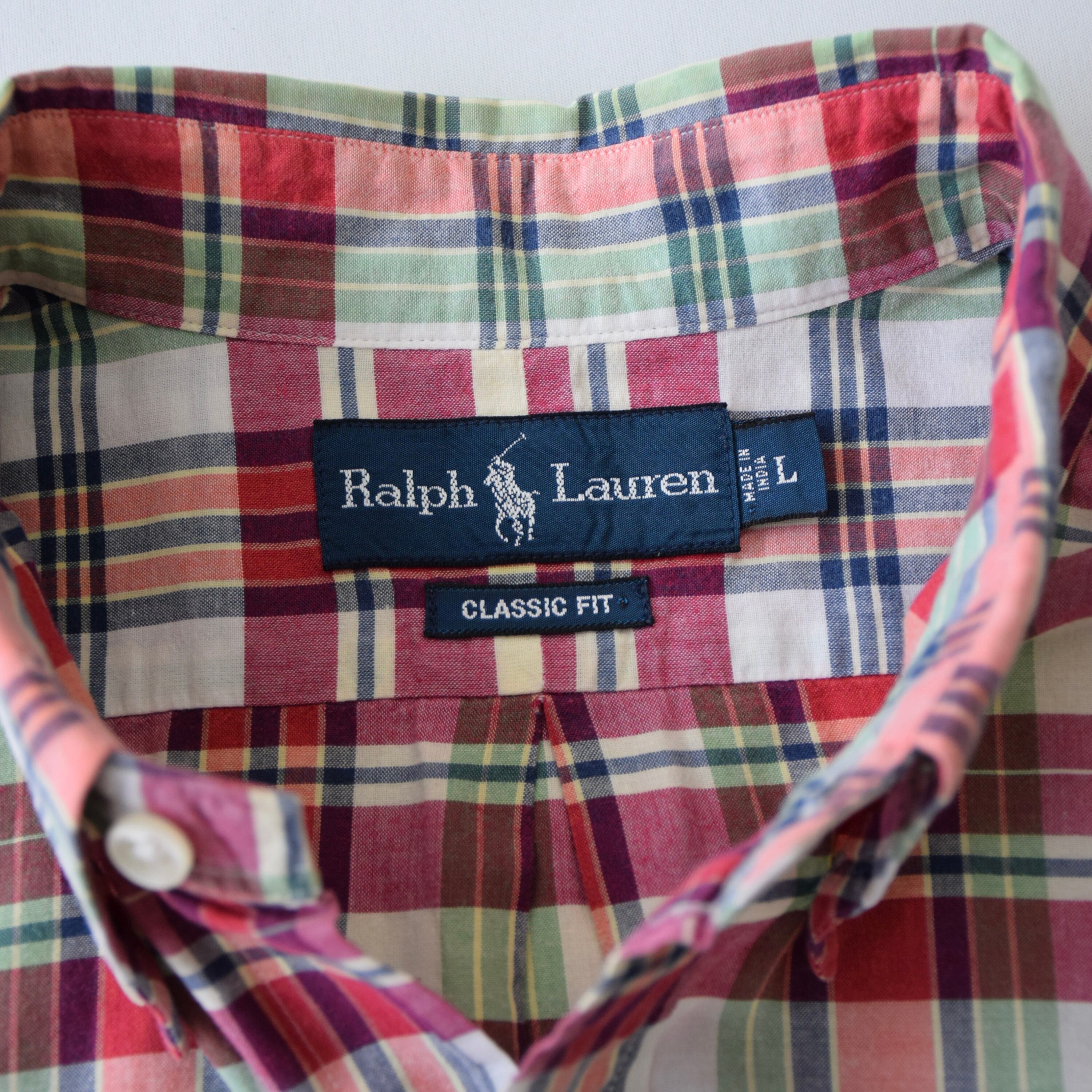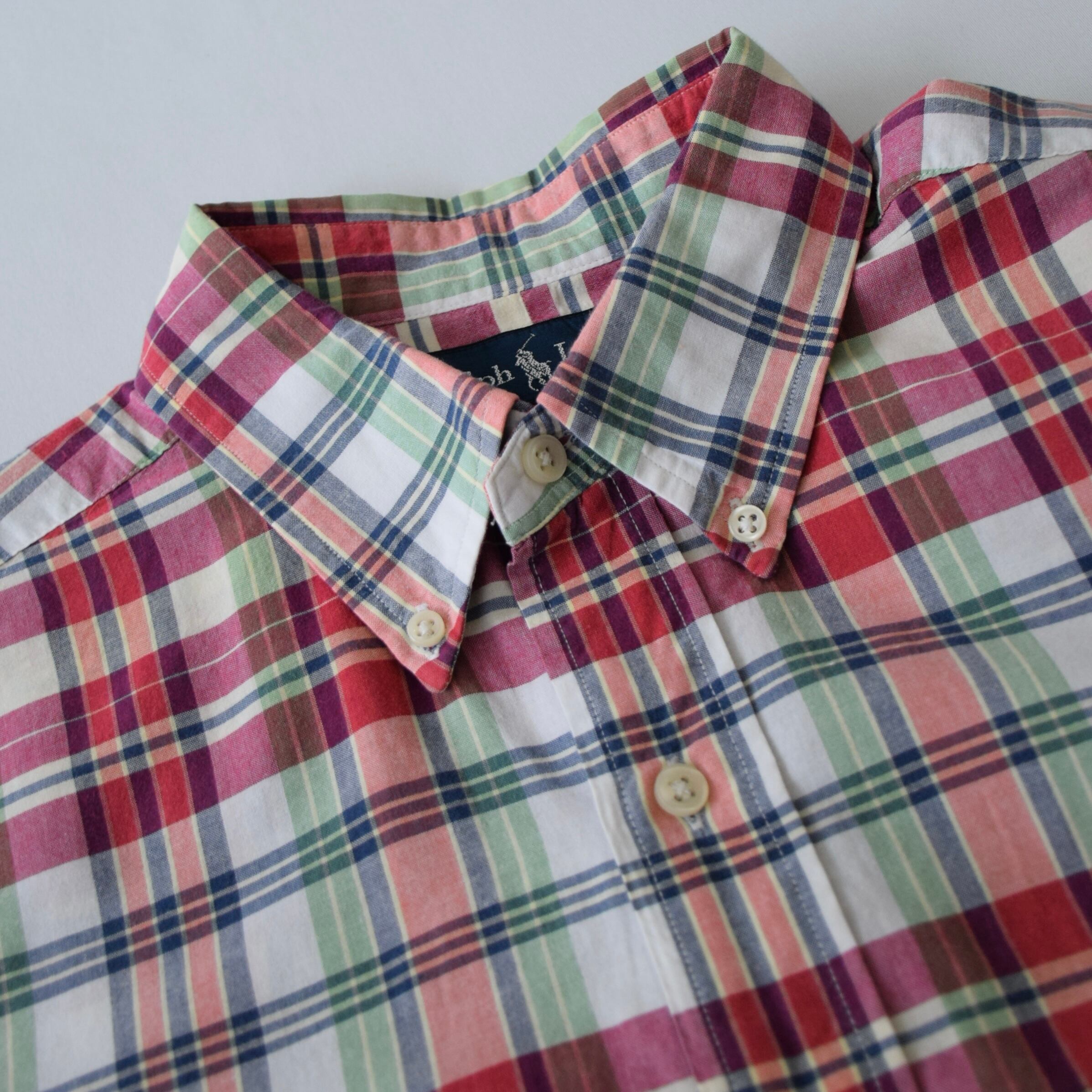 90's Ralph Lauren 半袖シャツ メンズ L ラルフローレン チェック柄 CLASSIC FIT ボタンダウンシャツ 古着 ヴィンテージ fc-2999 【26AWHS】