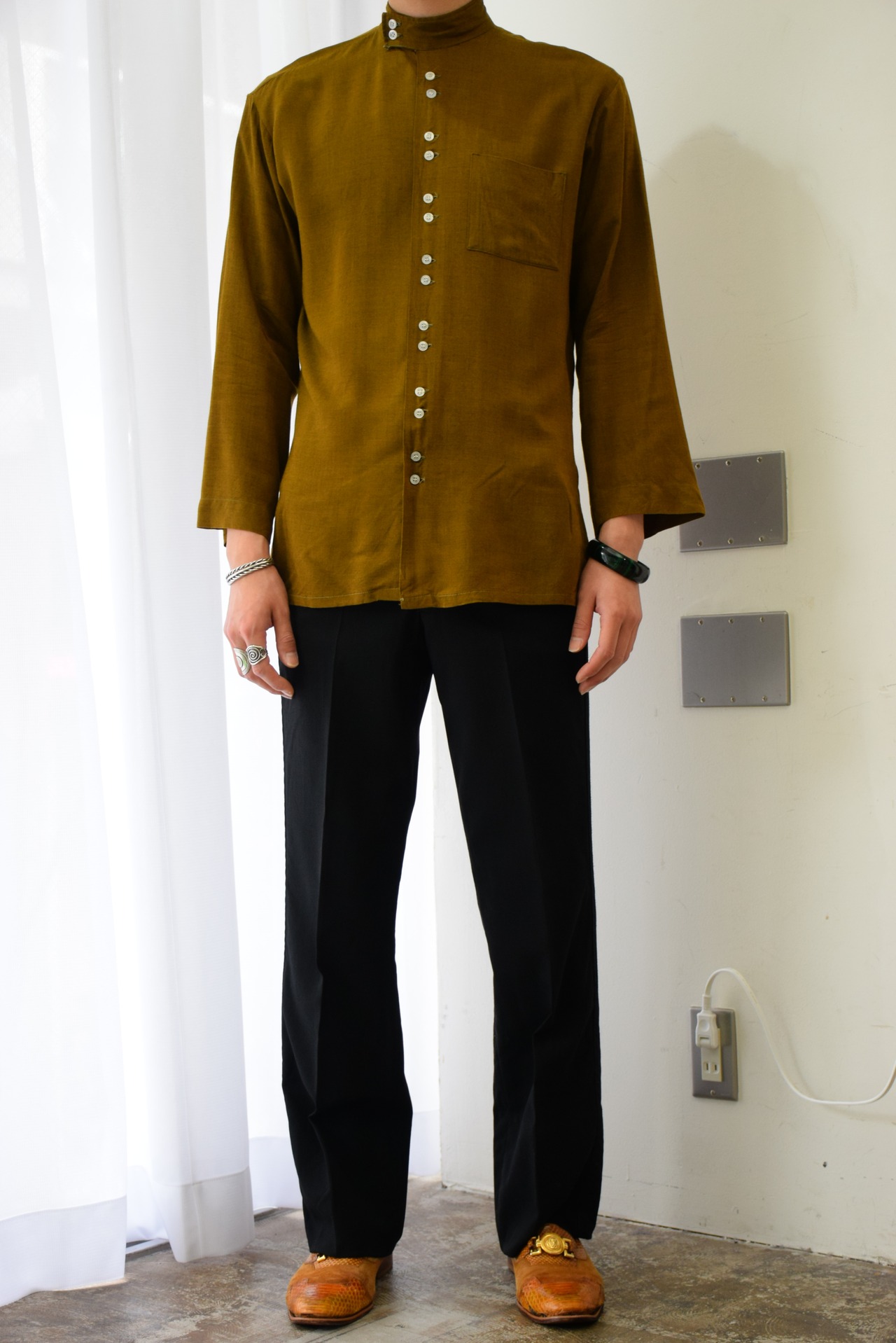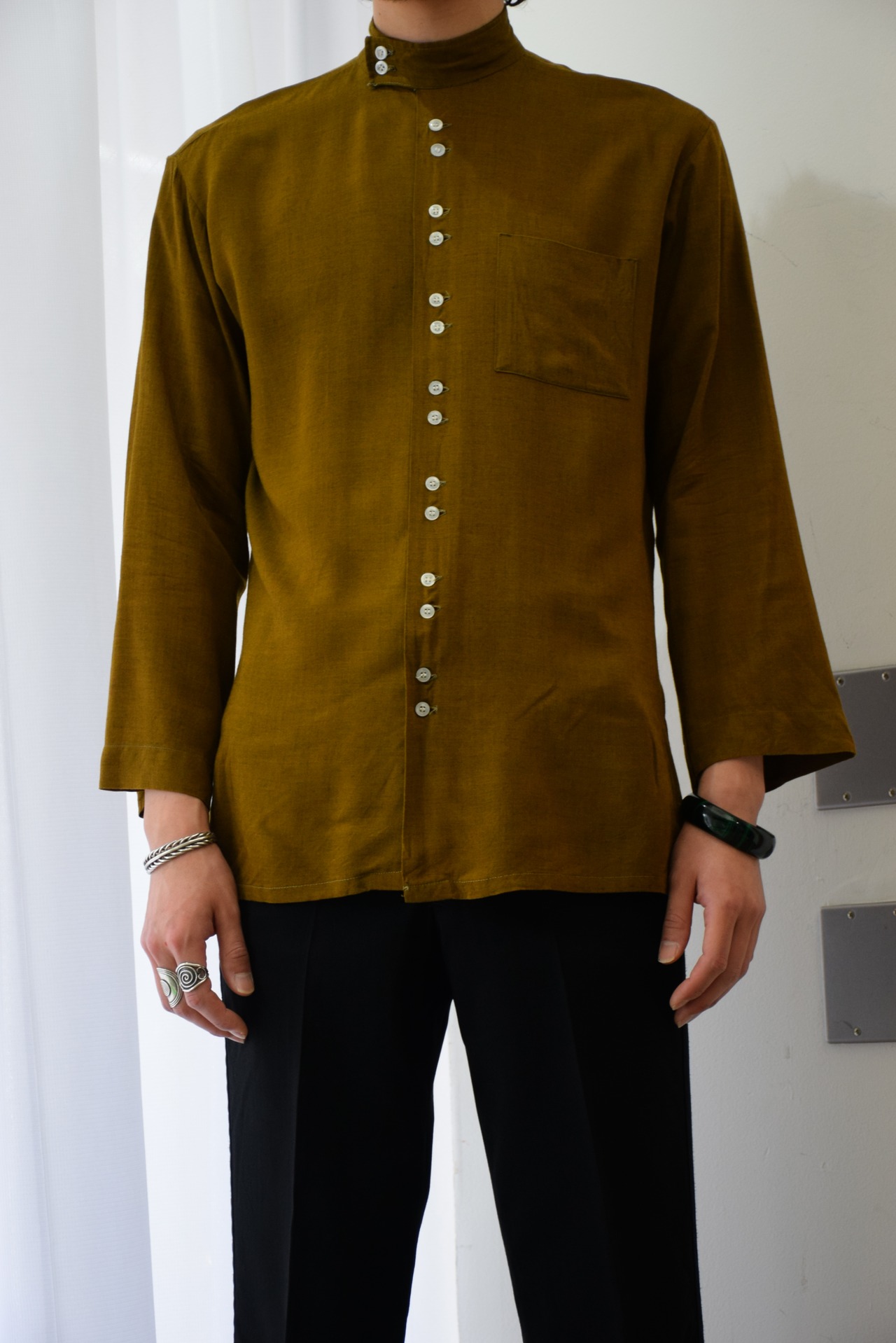 ボタンの量やチンストや袖先の作りなど面白いディテールがたくさんある、変わったヴィンテージシャツ。