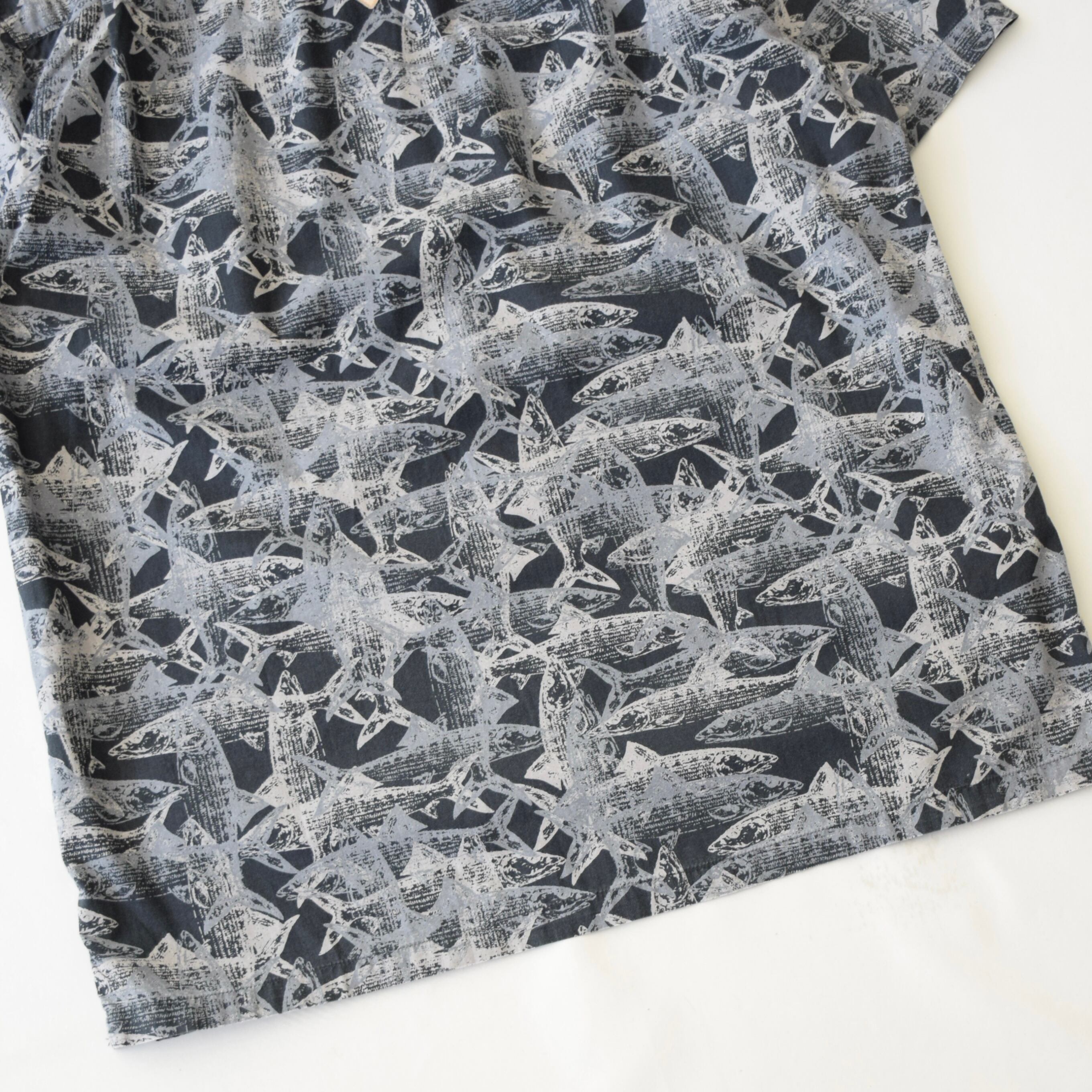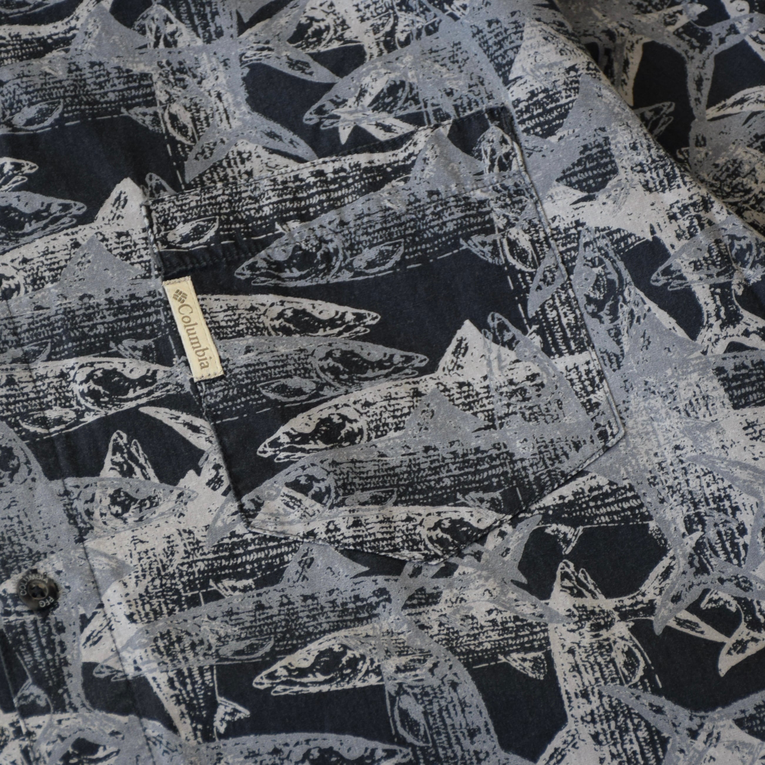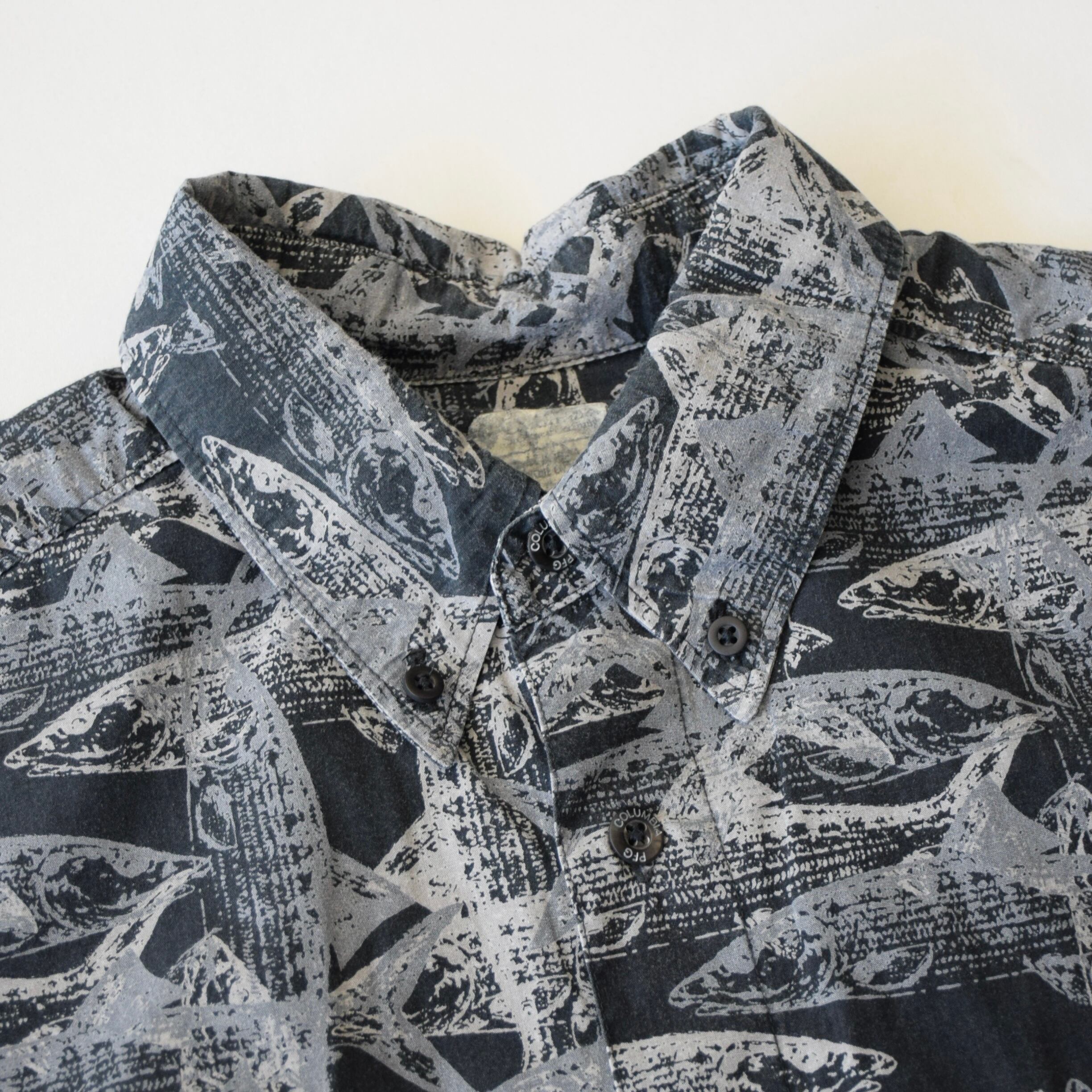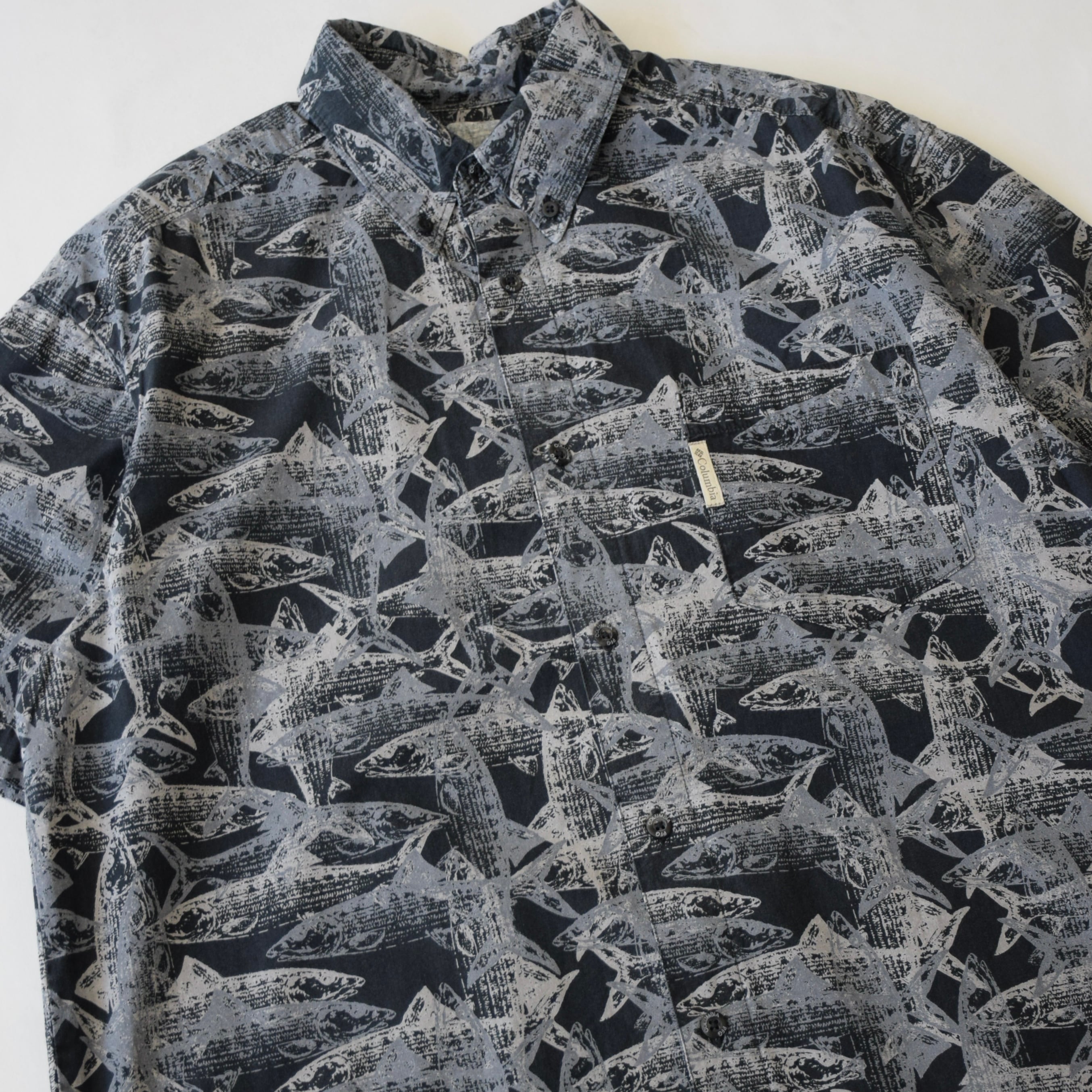 Columbia PFG 半袖シャツ 総柄 メンズ M ブラック グレー コロンビア アウトドア 魚柄 古着 ヴィンテージ fc-3035 【26SSHS】