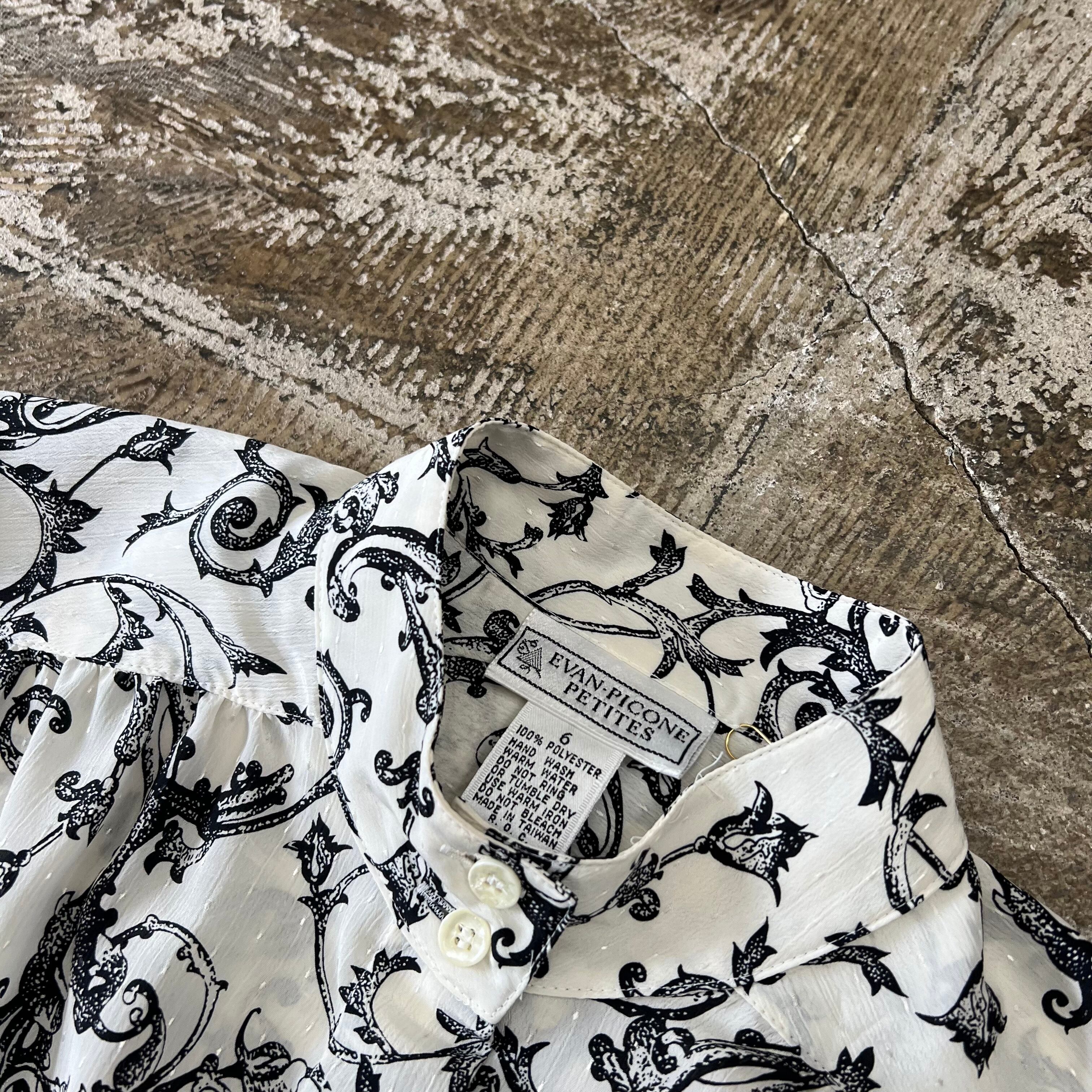 90‘s patterned bow tie blouse fcl-46