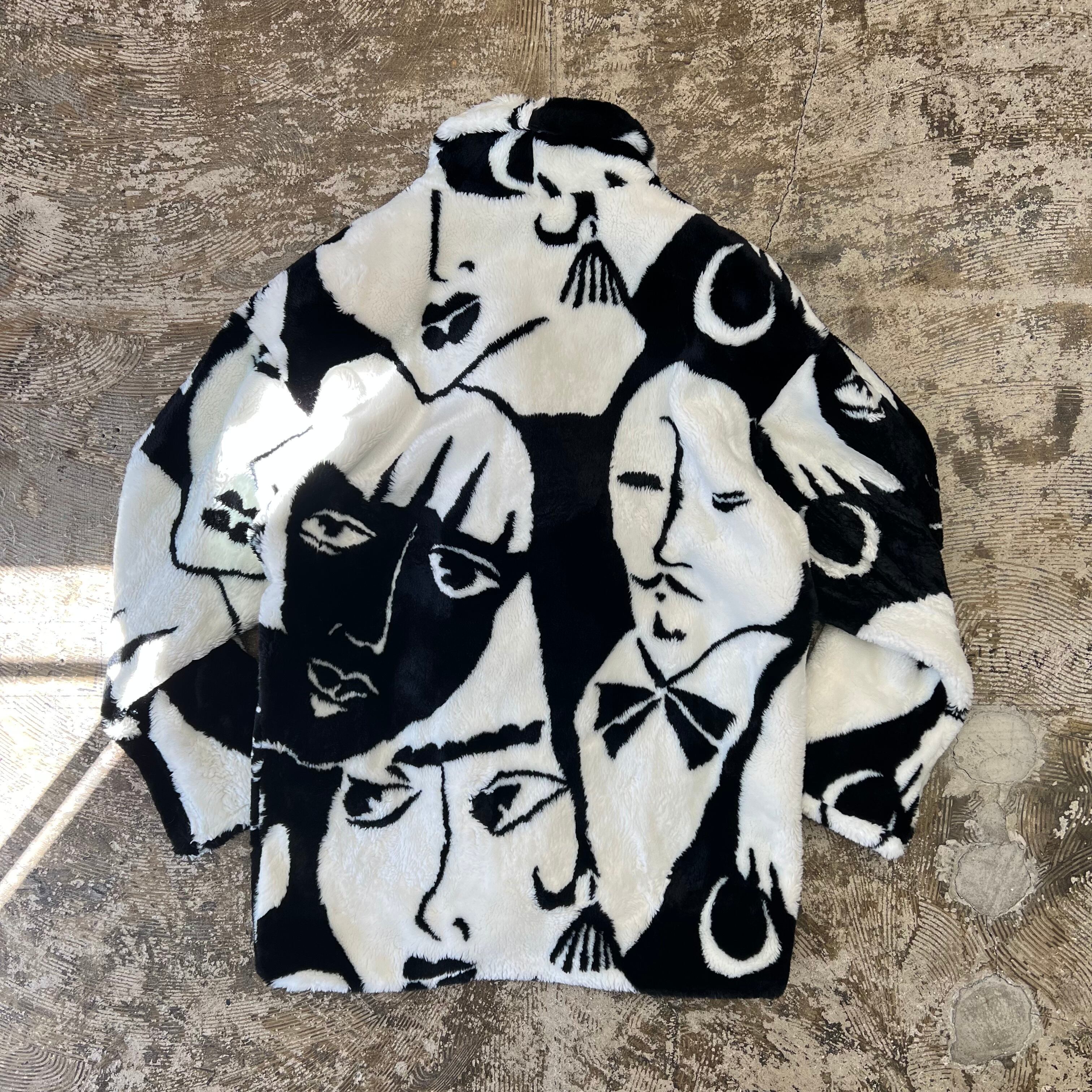 特徴的なフェイス柄にボリュームのあるフェイクファーでファッション製の高い一着。