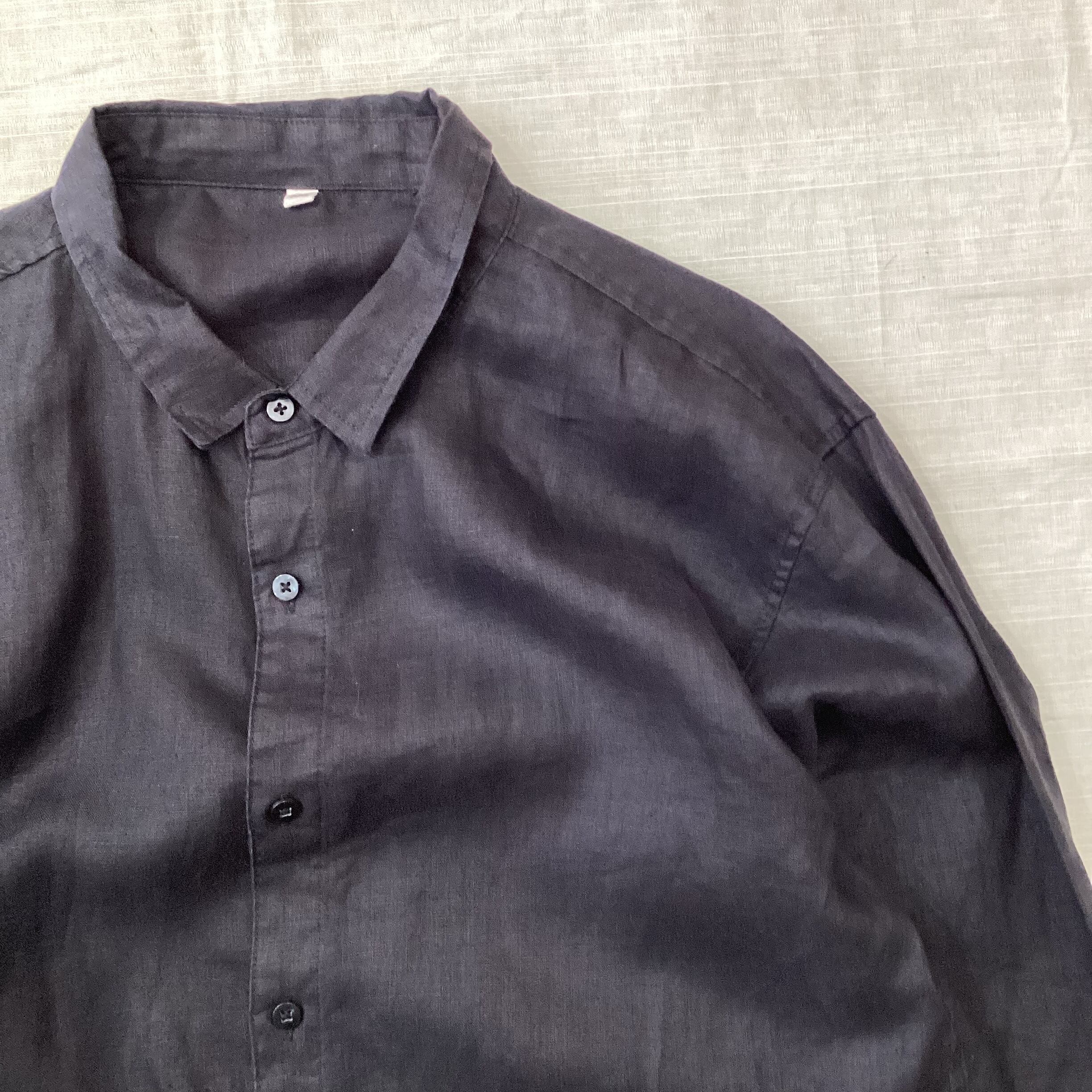 長袖リネンシャツ ブラックリネンシャツ スリーピングシャツ fc-493