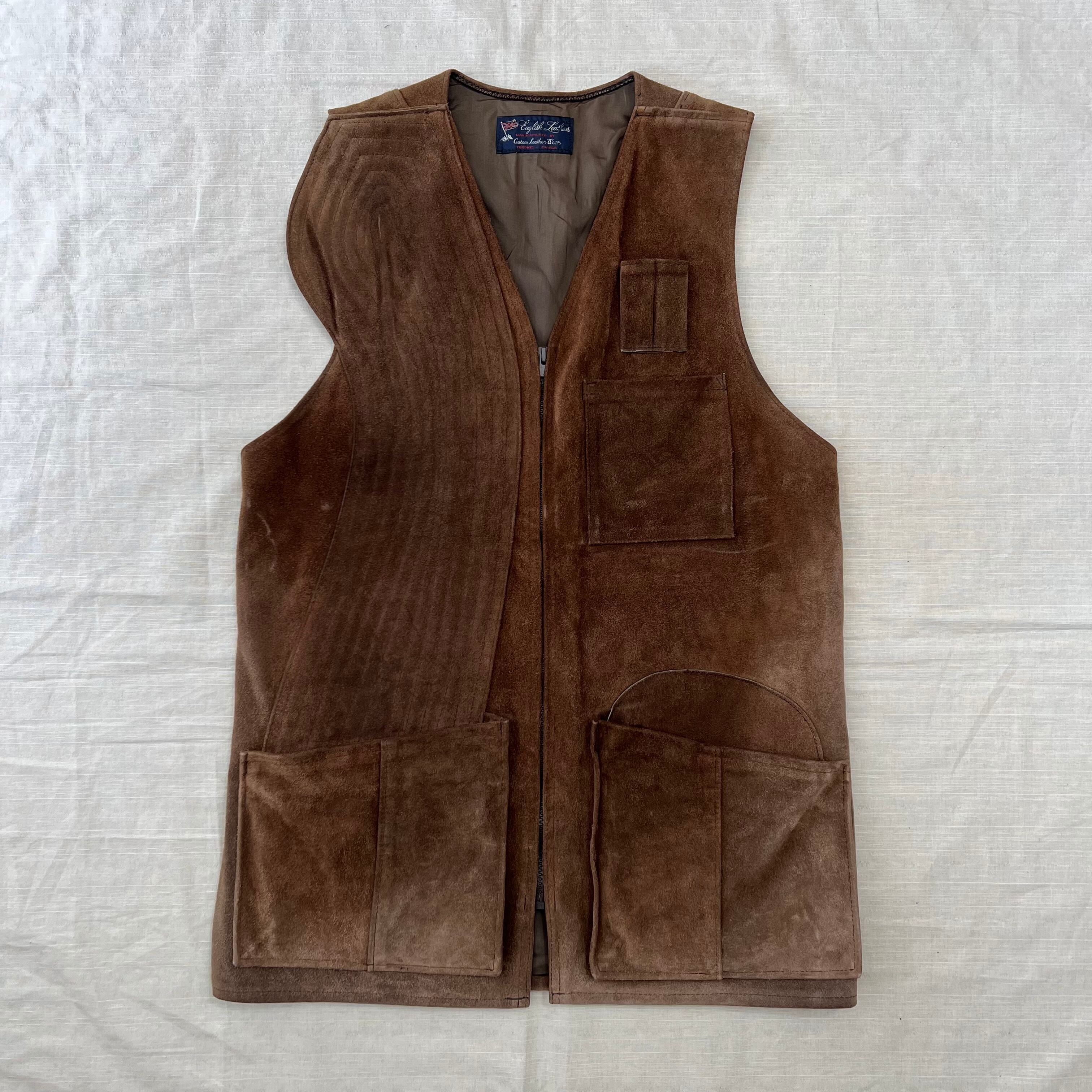80‘s English leather スエードレザーシューティングベスト ハンティングベスト レザーベスト fc-497