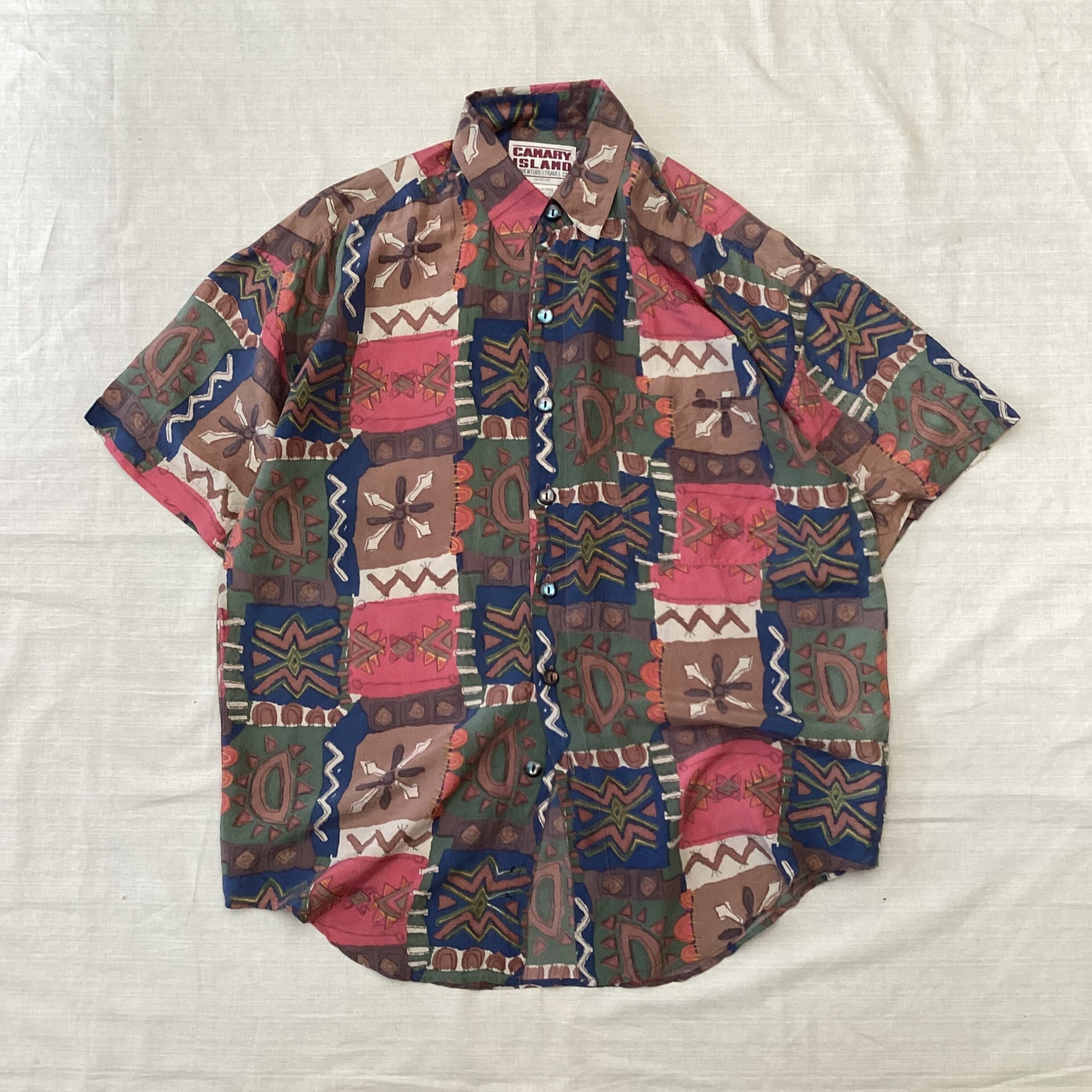 90’s CAMARY ISLAND オールシルクシャツ 半袖シャツ fc-573 【23SS20】