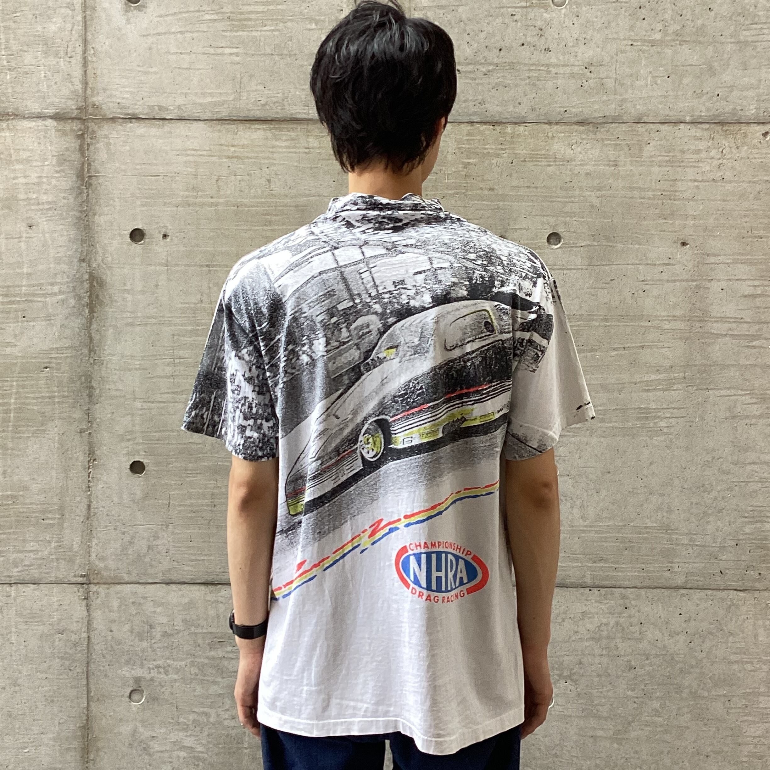 90’s アメリカ製 NHRA レーシングTシャツ 総柄Tシャツ ナスカーTシャツ fc-578 【23SS20】