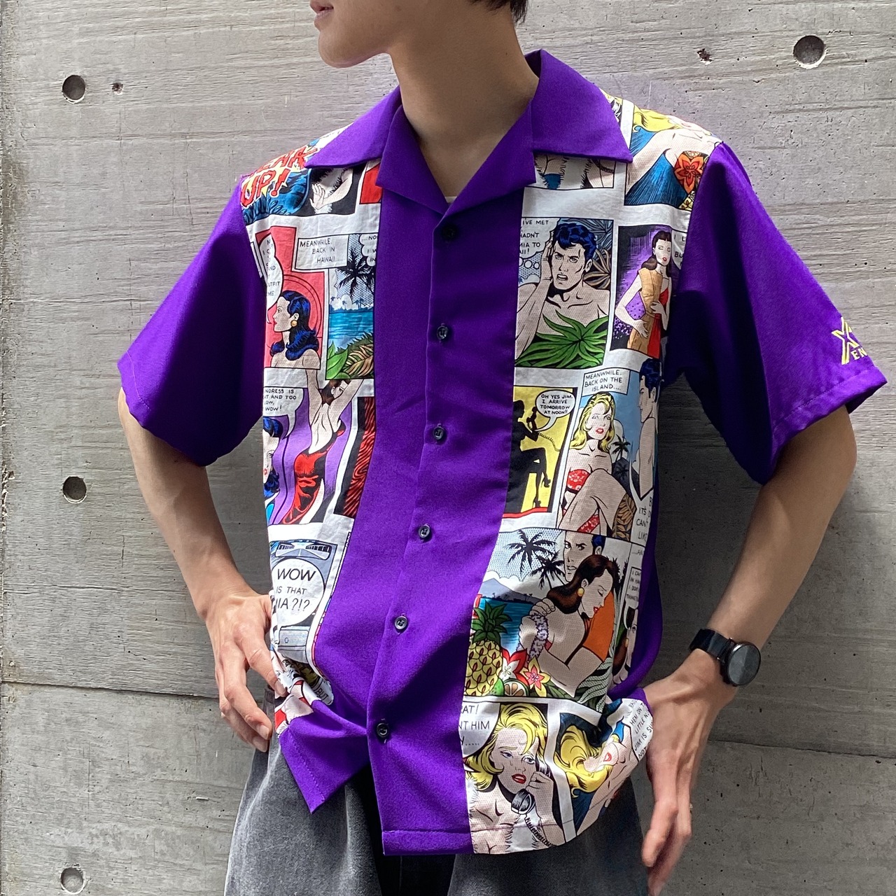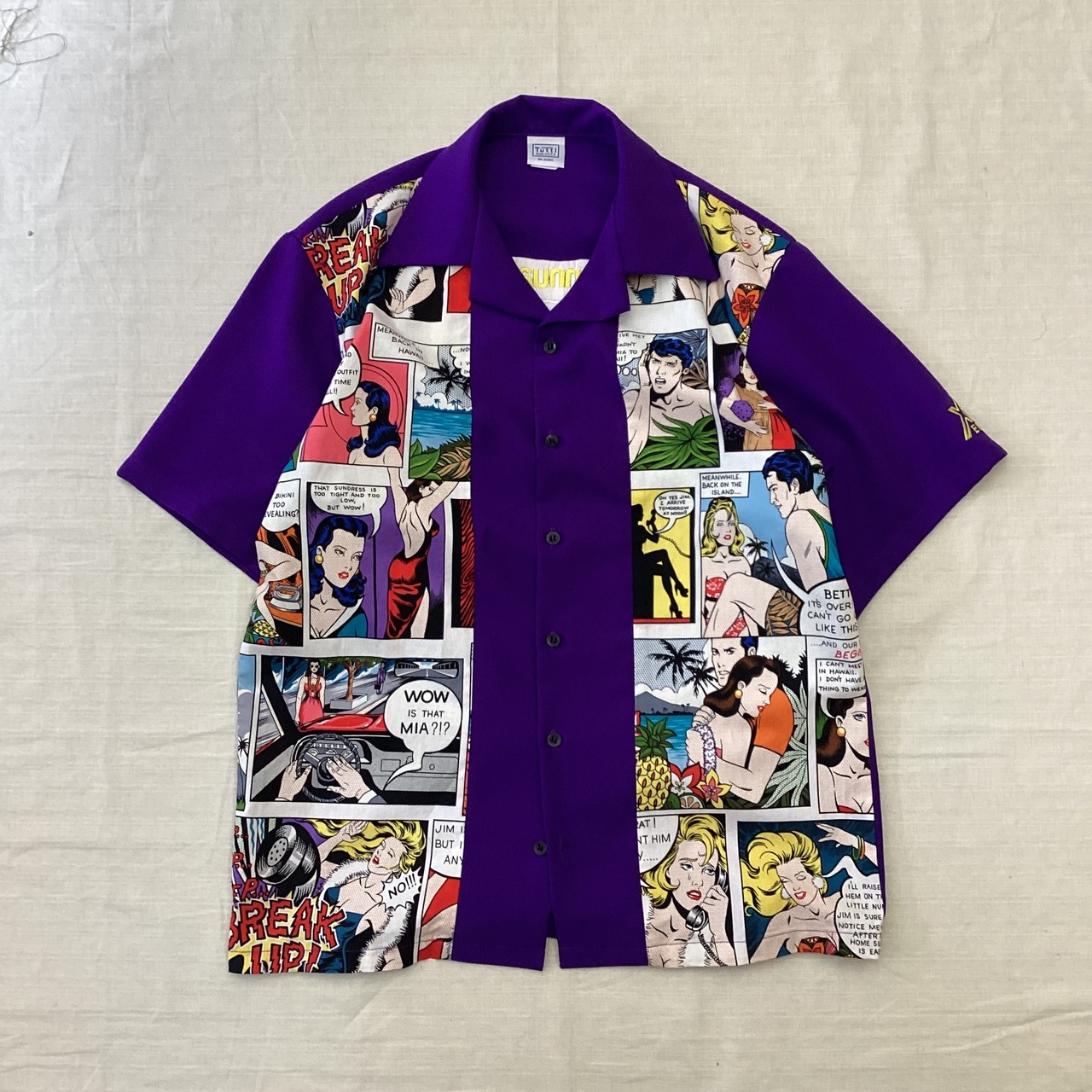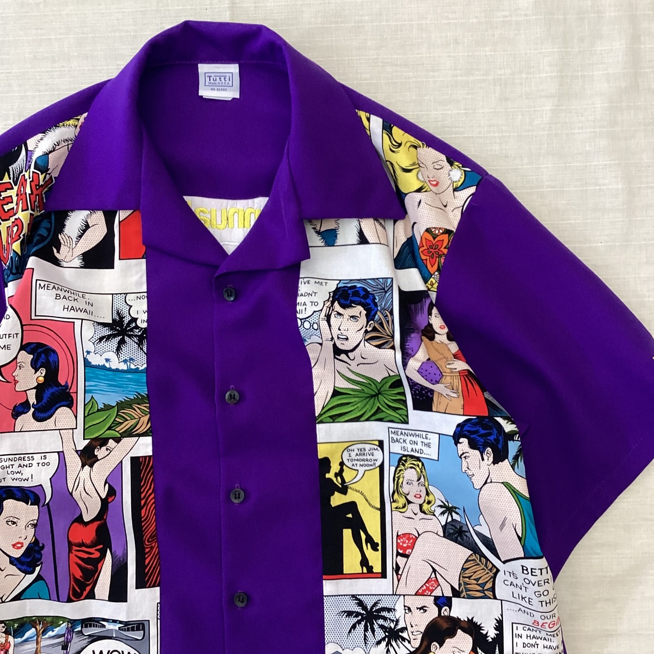 USA製 90’s Tutti ボーリングシャツ 半袖開襟シャツ オープンカラーシャツ アメコミシャツ 柄シャツ fc-591