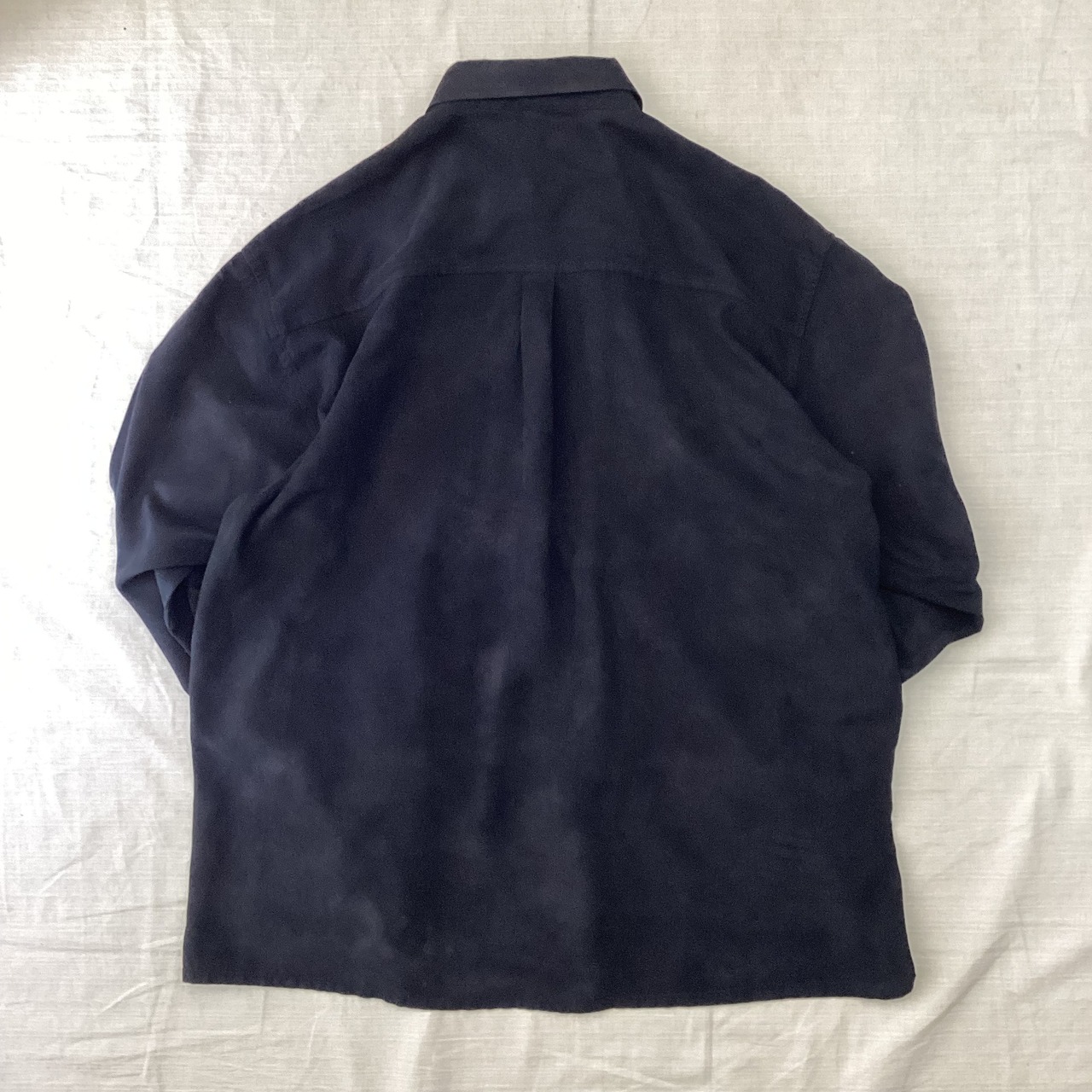 デザイン製の効いたフェイクスウェードシャツです。