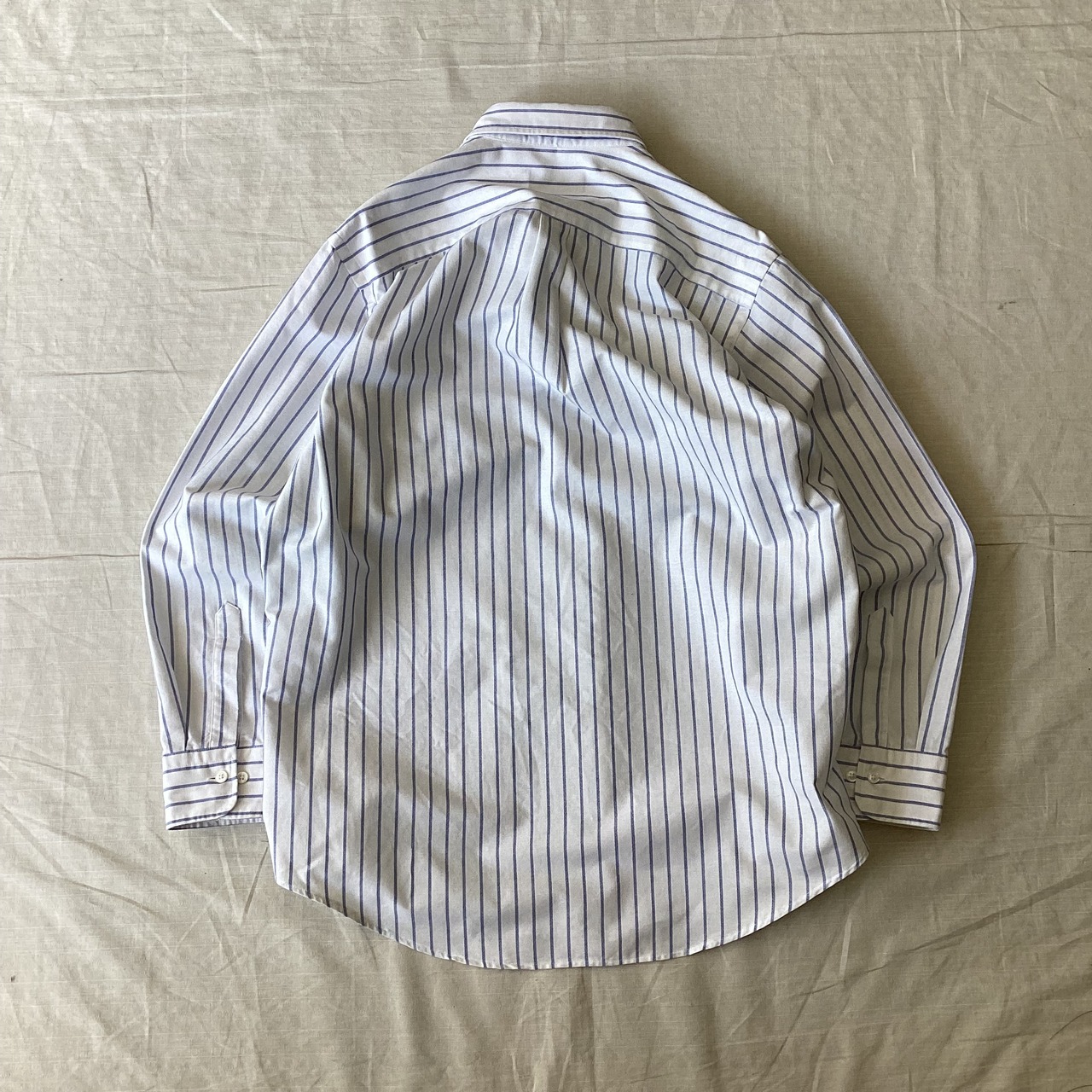 ラルフローレンの名前がまだ残っている時期のチャップスのアイテム、コットンとポリエステルを混合したしっかりとした生地、ホワイトベースにブルーのストライプ、ワンポイントなどのロゴなし、探そうと思うと有りそうで無いアイテム。