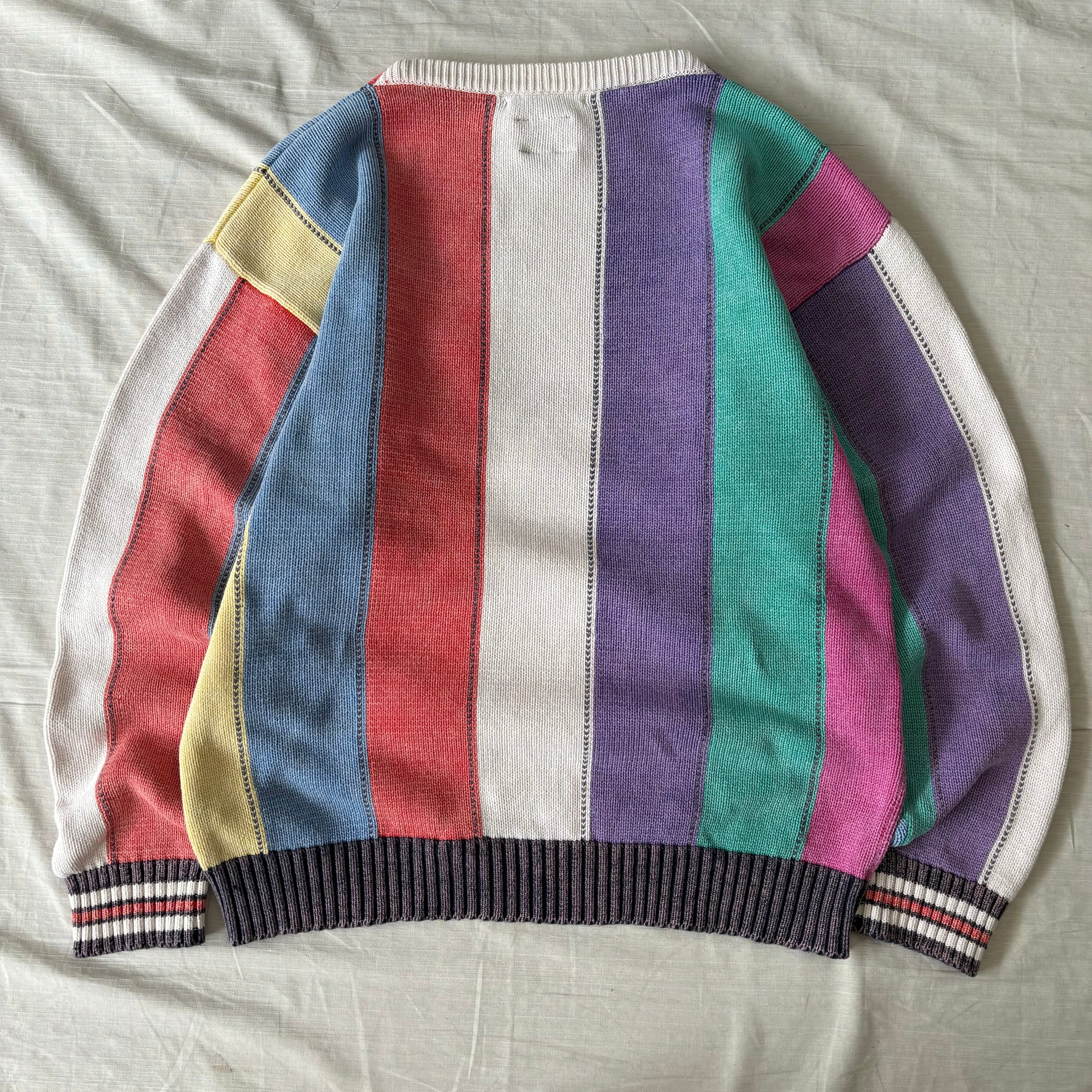 90’s TOMMY HILFIGER/トミーヒルフィガー マルチストライプコットンニット デザインニット 柄ニット 古着 fc-1850