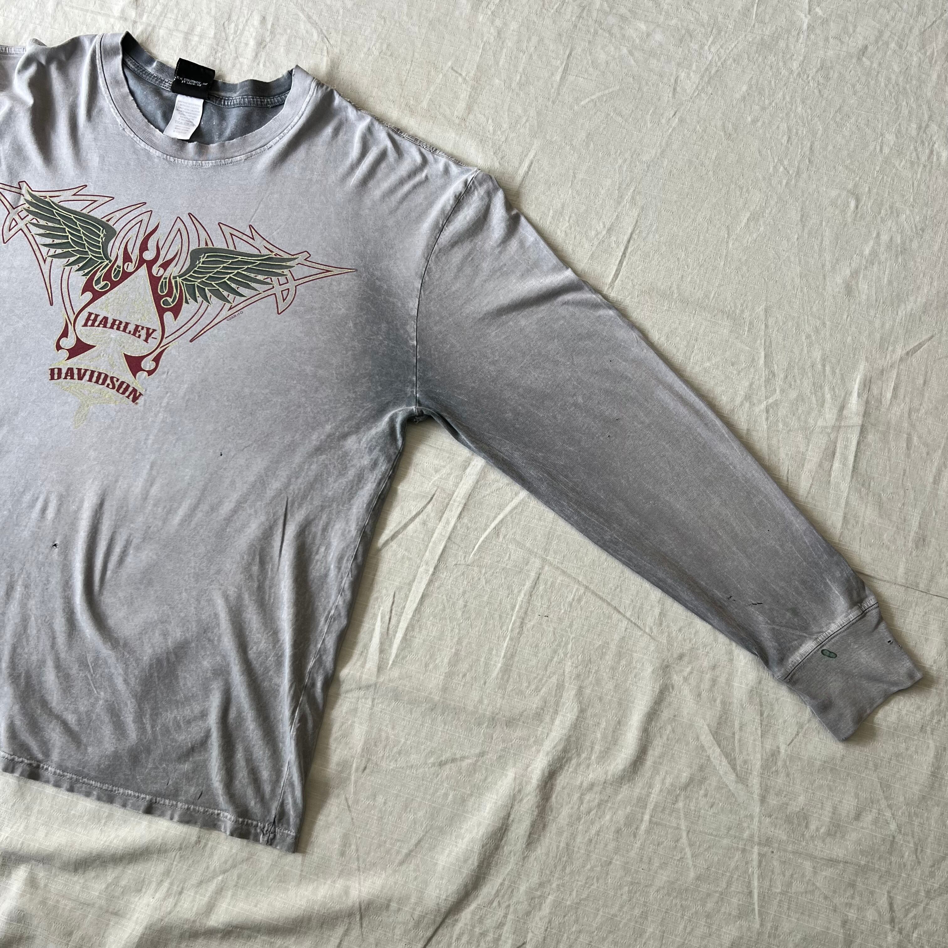 [鬼フェード]00’s USA製 Harley-Davidson/ハーレーダビッドソン 長袖Tシャツ ロンT ボロ 古着 ヴィンテージ fc-2205[2024AWSW]
