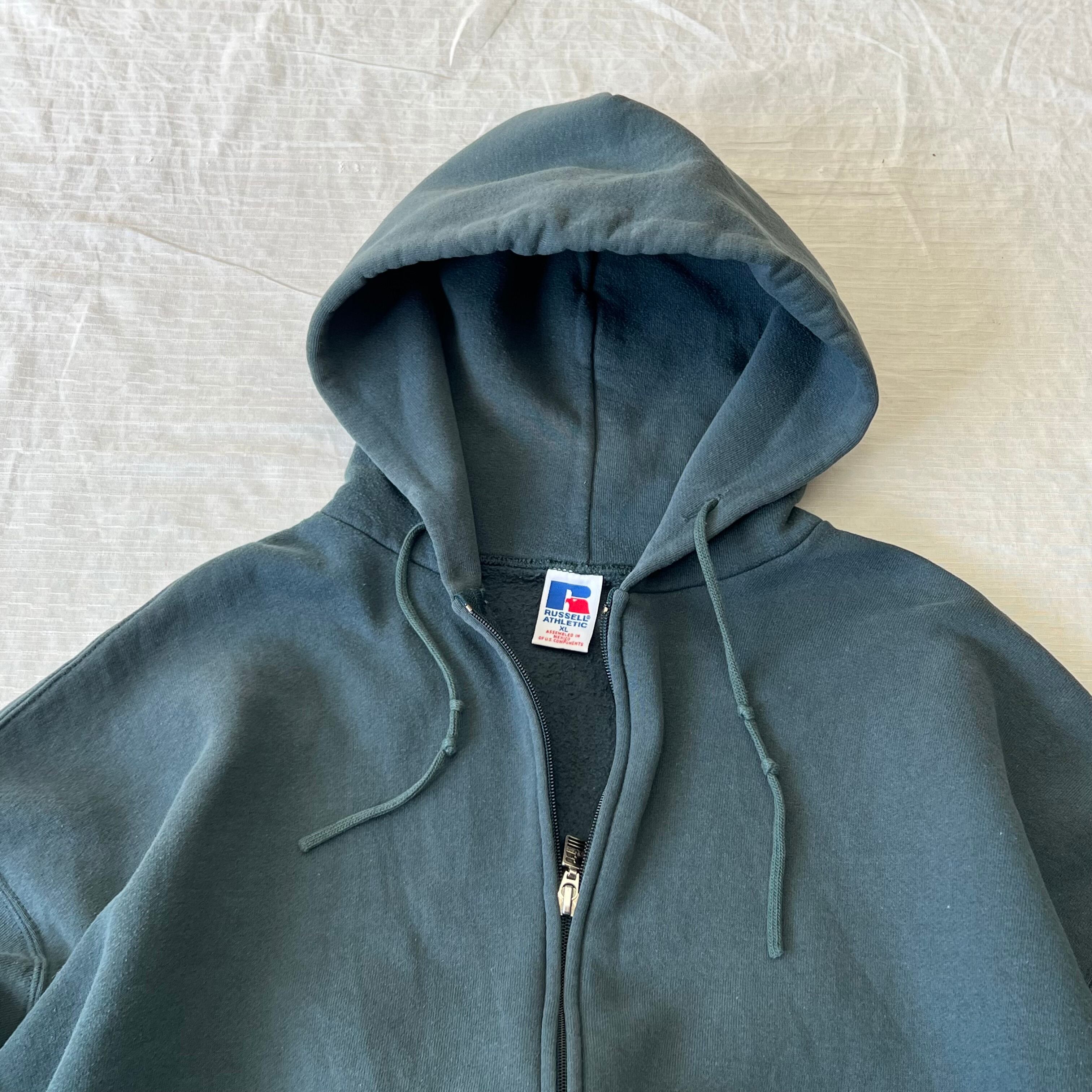 90’s RUSSELL ATHLETIC ジップアップ無地スウェットパーカー メンズXL グリーン ブランク フーディー ラッセルアスレチック 古着 ヴィンテージ fc-2330【24AWSW】