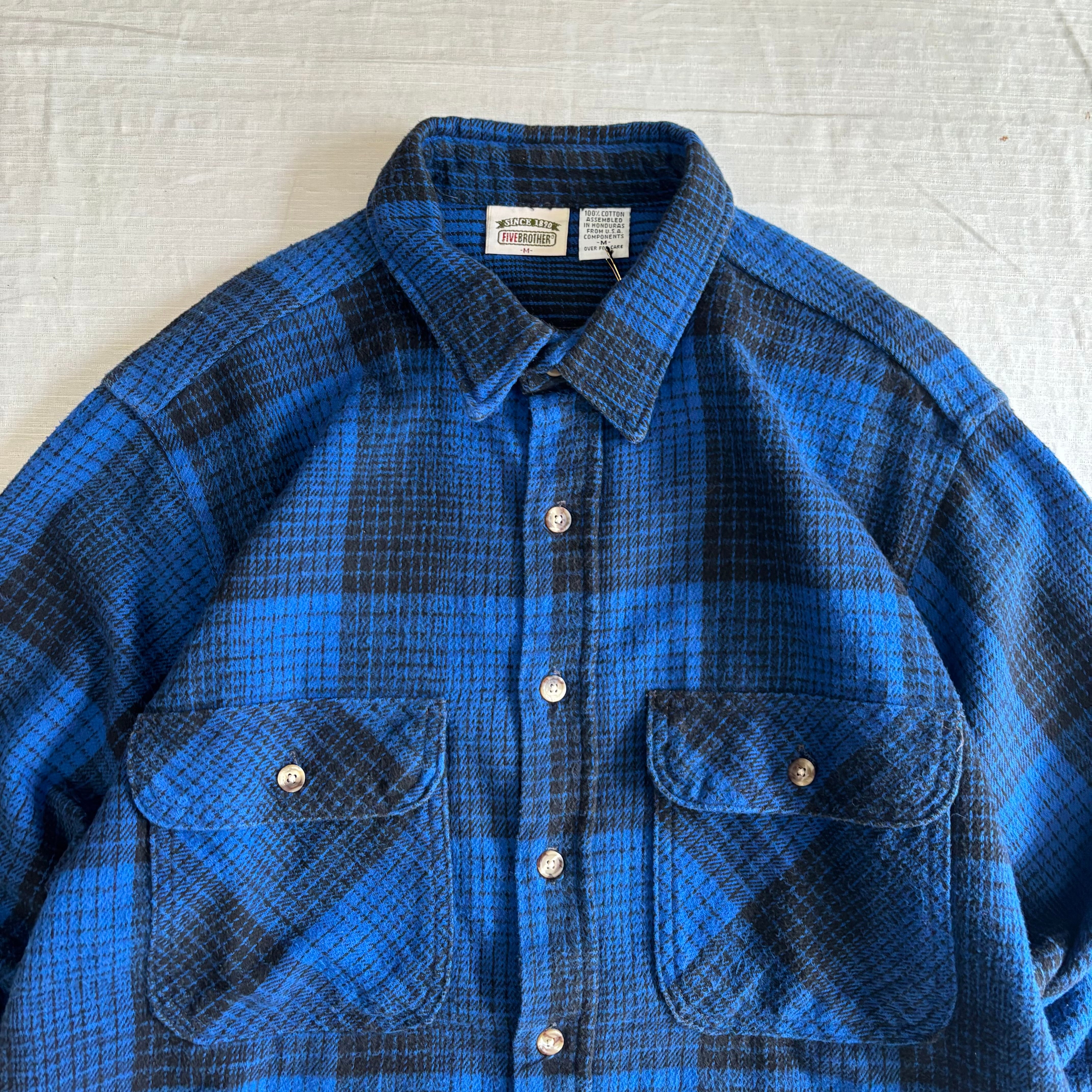 90‘s FIVEBROTHER ネルシャツ メンズM ブルー×ブラック チェック柄 ヘビーネル ファイブブラザー 古着 ヴィンテージ fc-2357 【24AWNS】