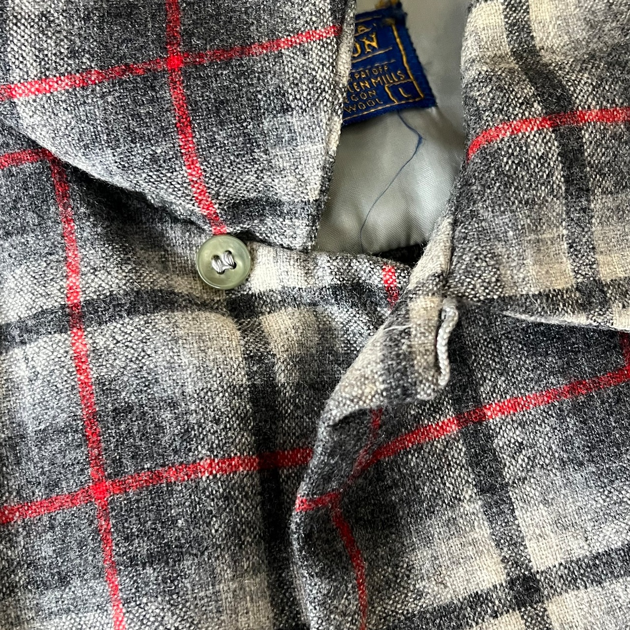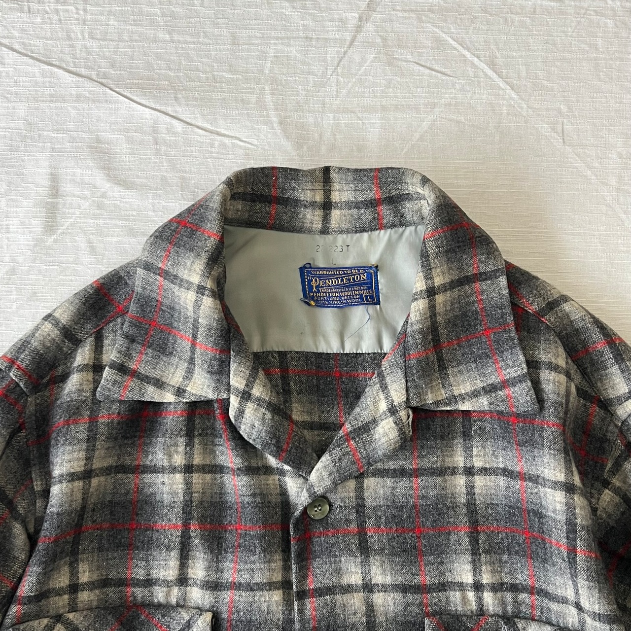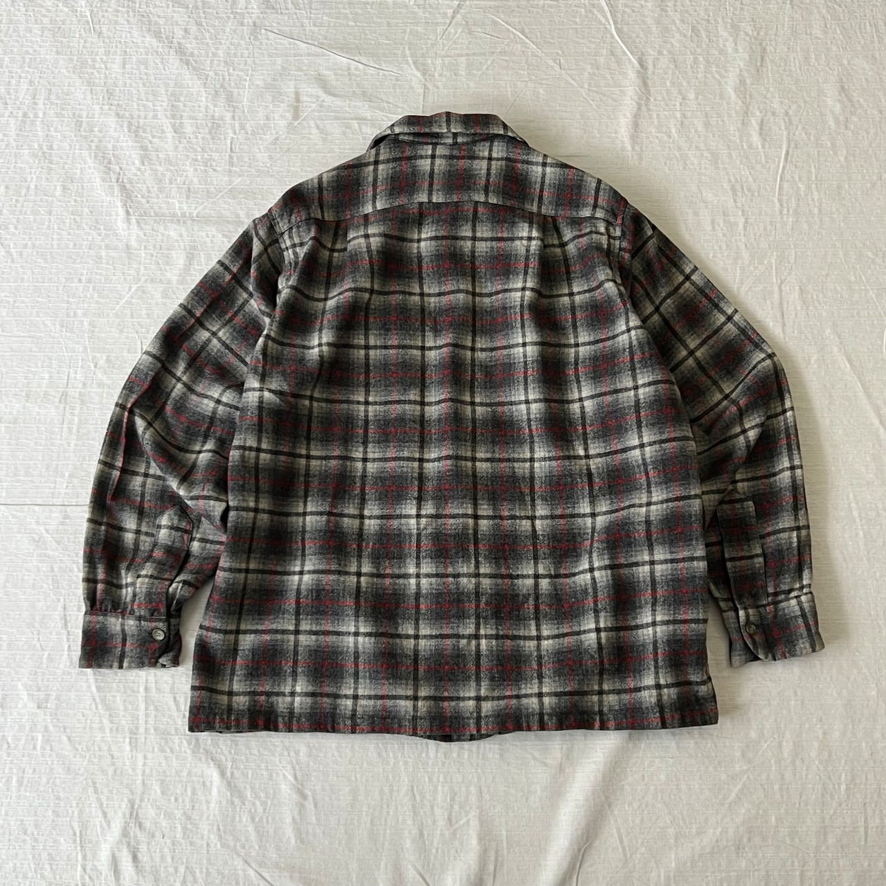 【m様専用】50’s USA製 Pendleton オンブレチェックウールボードシャツ メンズL ブラック系 開襟 オープンカラー 古着 ヴィンテージ fc-2365【24AWNS】