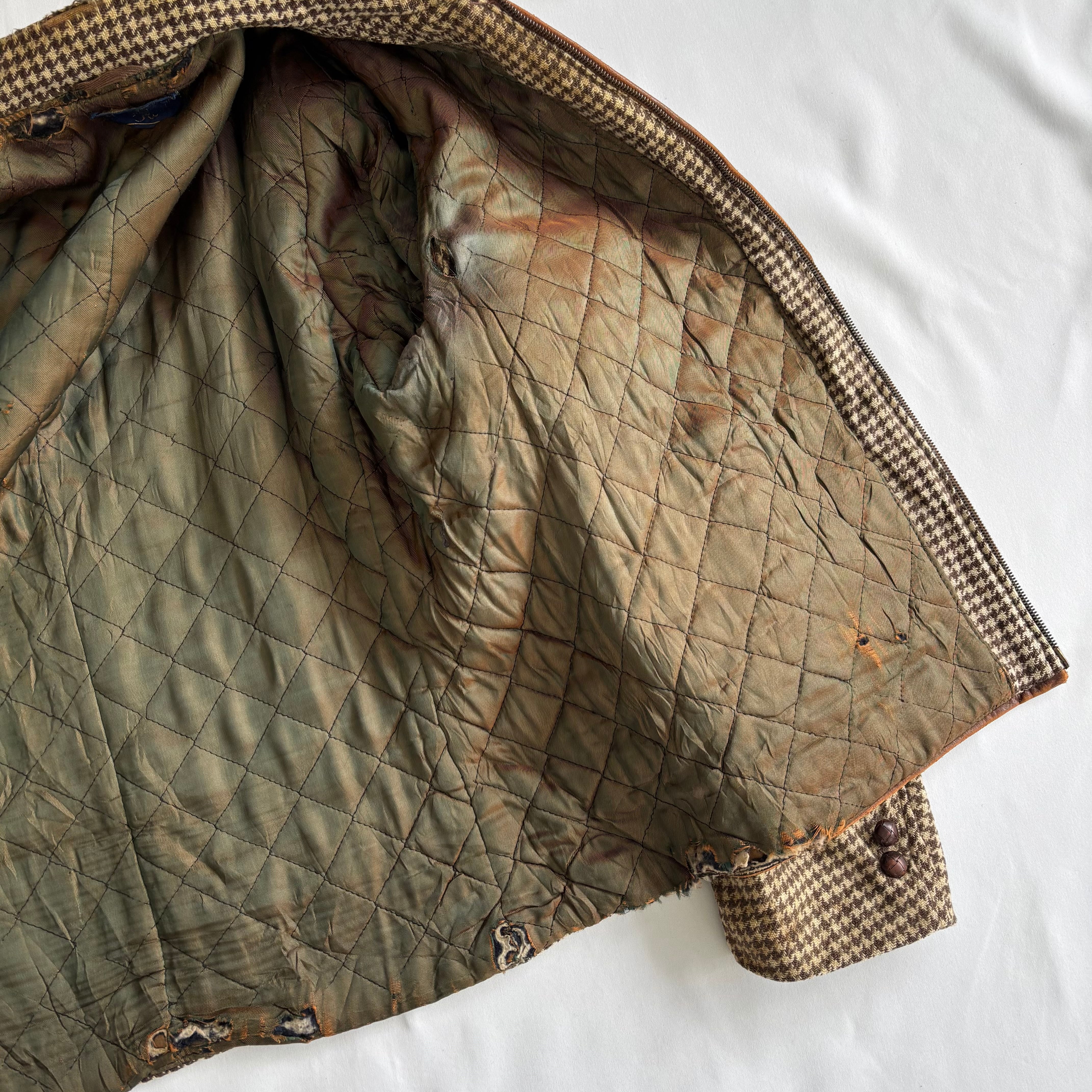 (商品状態):USED品。裏地のダメージや袖の穴、シミなどが見受けられますが風合いがよく良い雰囲気かと思います。