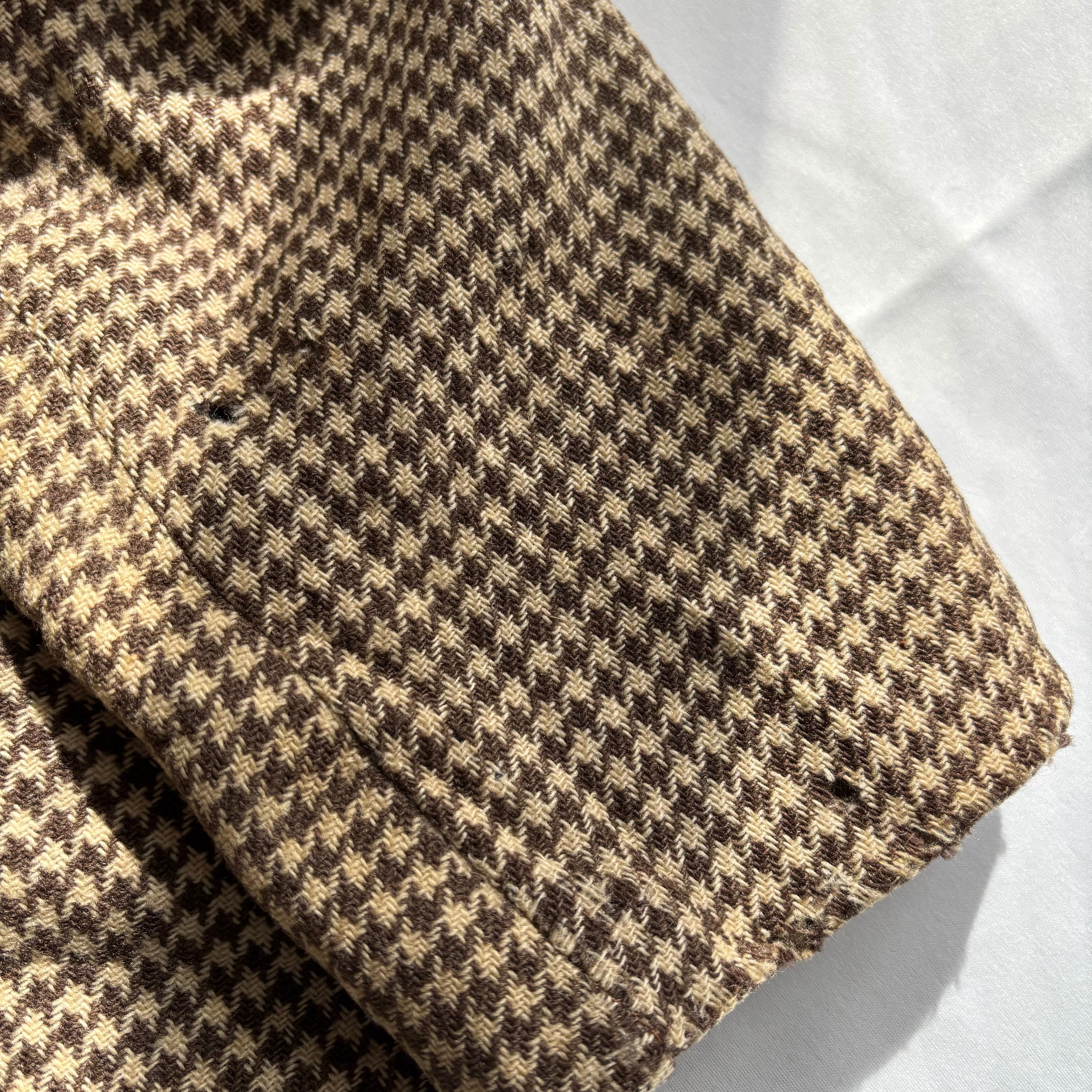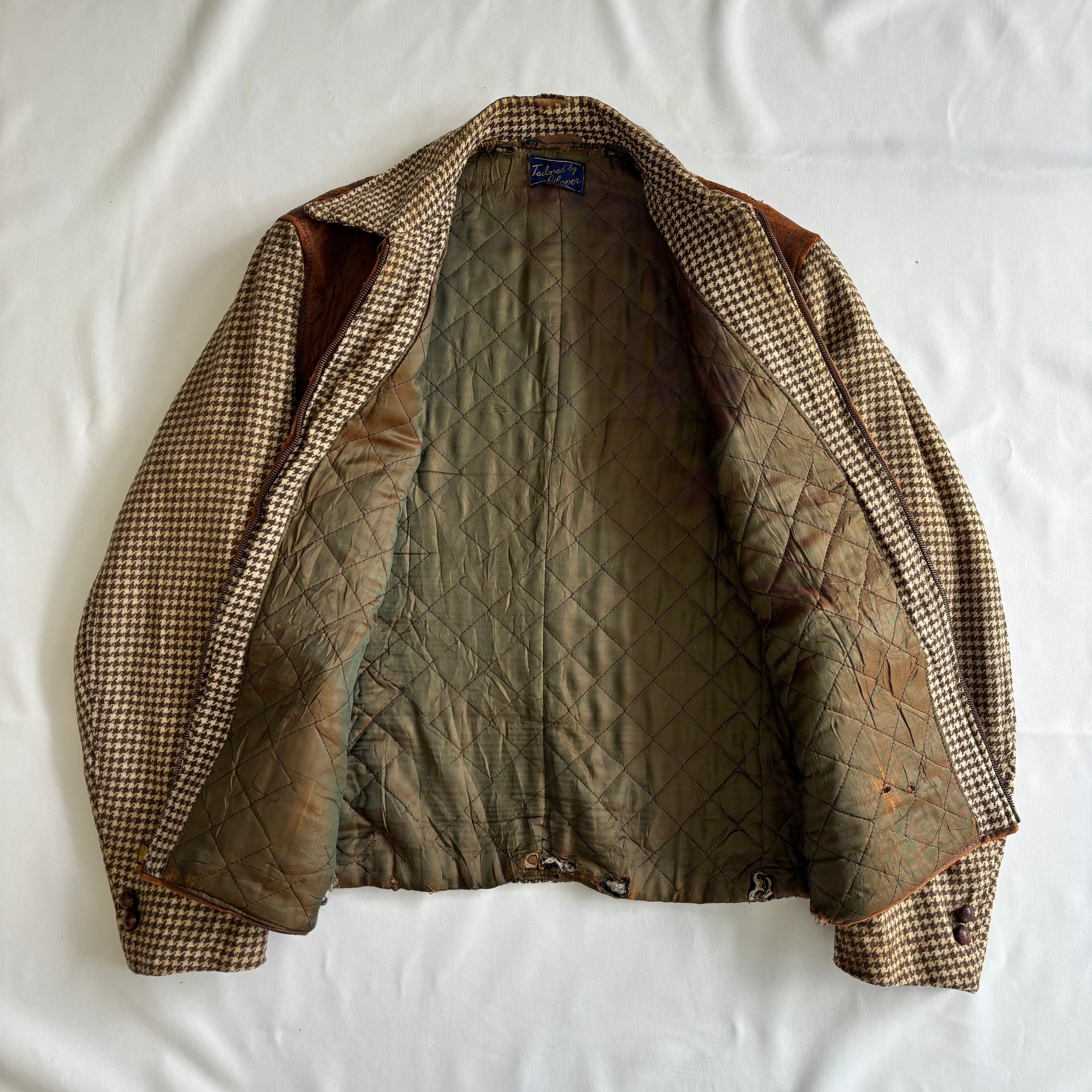 50‘s レザー×ウール切り替えジャケット メンズL相当 ブラウン 千鳥柄 古着 ヴィンテージ fc-2456 【25AWJK】