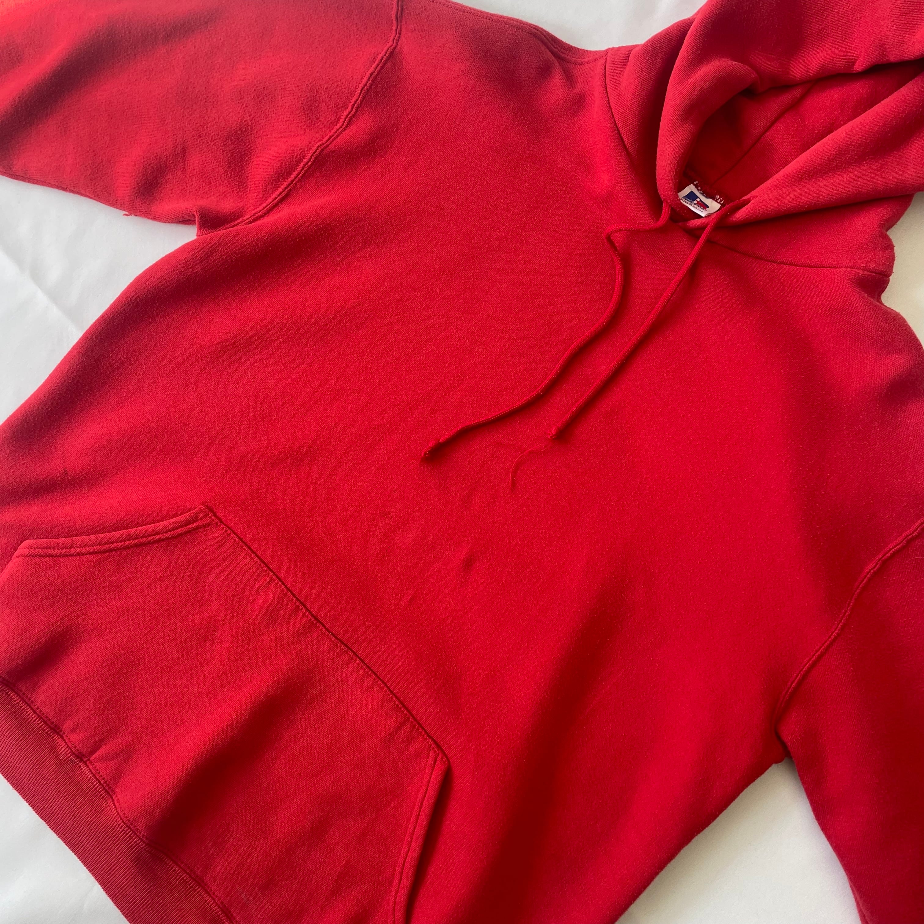 80‘s USA製 RUSSELL ATHLETIC 無地スウェットパーカー メンズL レッド ブランク ラッセルアスレチック 古着 ヴィンテージ fc-2466【25AWSW】