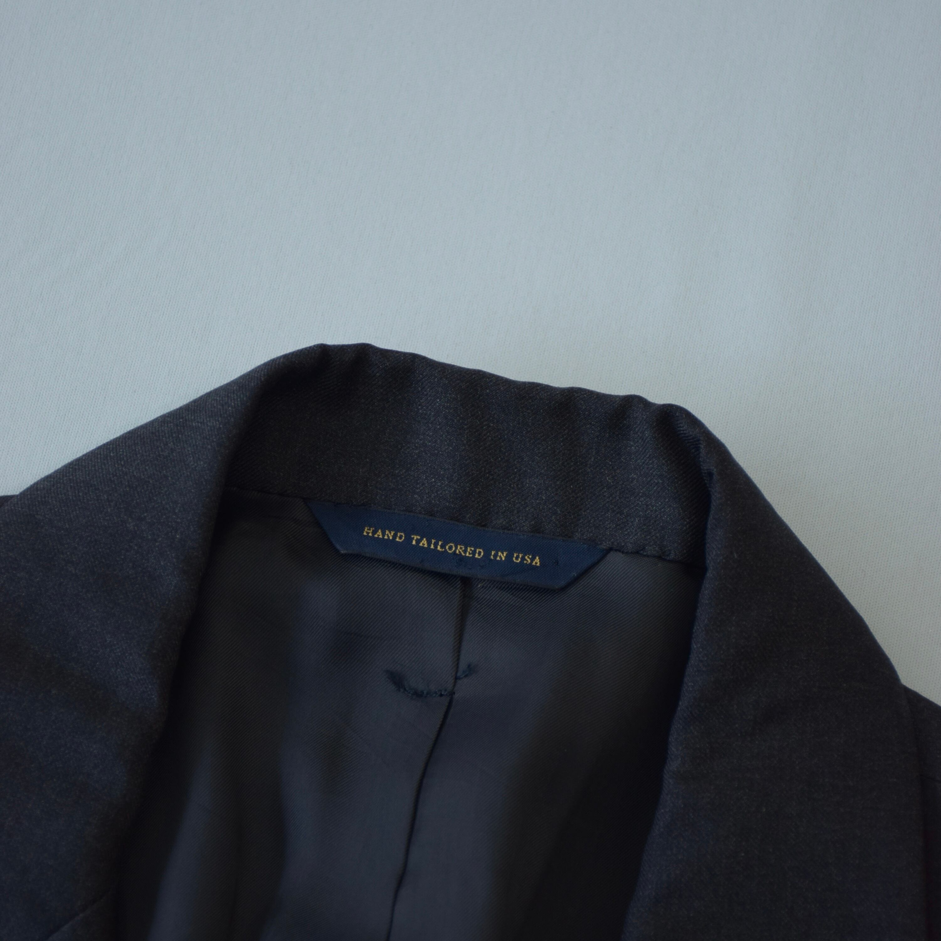 (商品状態):USED品。右脇に傷と袖ボタン付け替えられてありますが、問題なくご着用いただけるかと思います。また、裏地に傷が見られます。